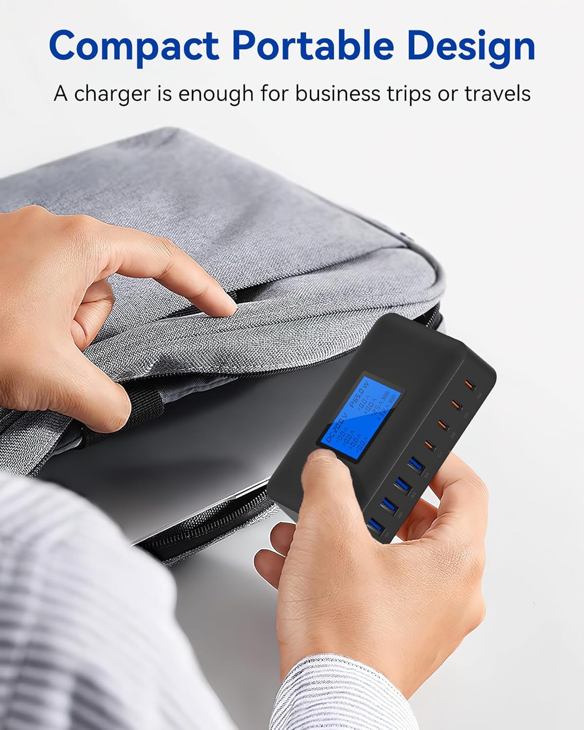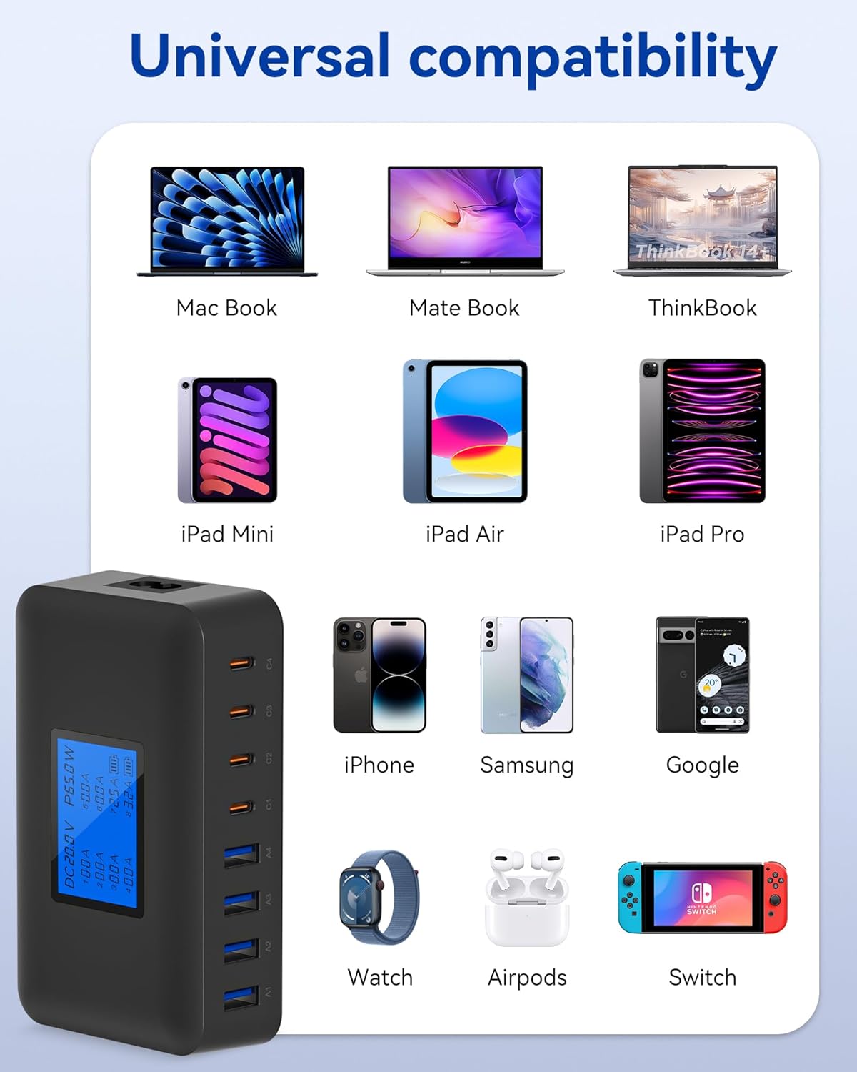 - 【8-Port 200W Schnellladegerät】: Dieser USB-C Ladegerät bietet eine beeindruckende Gesamtleistung von bis zu 200W und ist mit 8 Anschlüssen ausgestattet, darunter 4 USB-A- und 4 USB-C-Ports. Mit diesem USB C Netzteil können Sie mehrere Geräte