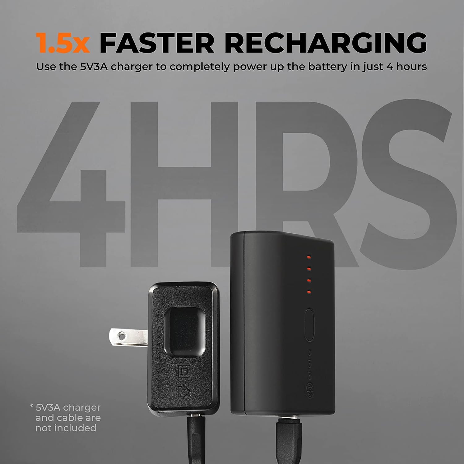 • Marktführende Ladezeit: Dank einer neuen Technik dauert es nur 4 Stunden, um diesen 4800mAh-Akku mit einem 5V3A-Ladegerät aufzuladen, was eine Laufzeit von bis zu 10 Stunden für alle ORORO beheizbare Kleidungen ermöglicht (3 Stunden hoch, 6 Stunden