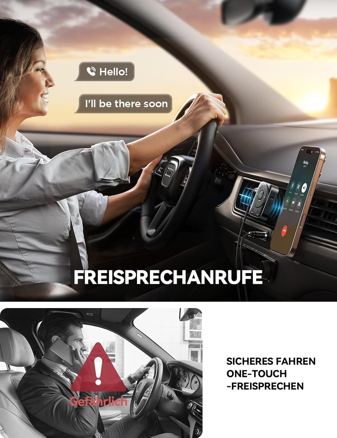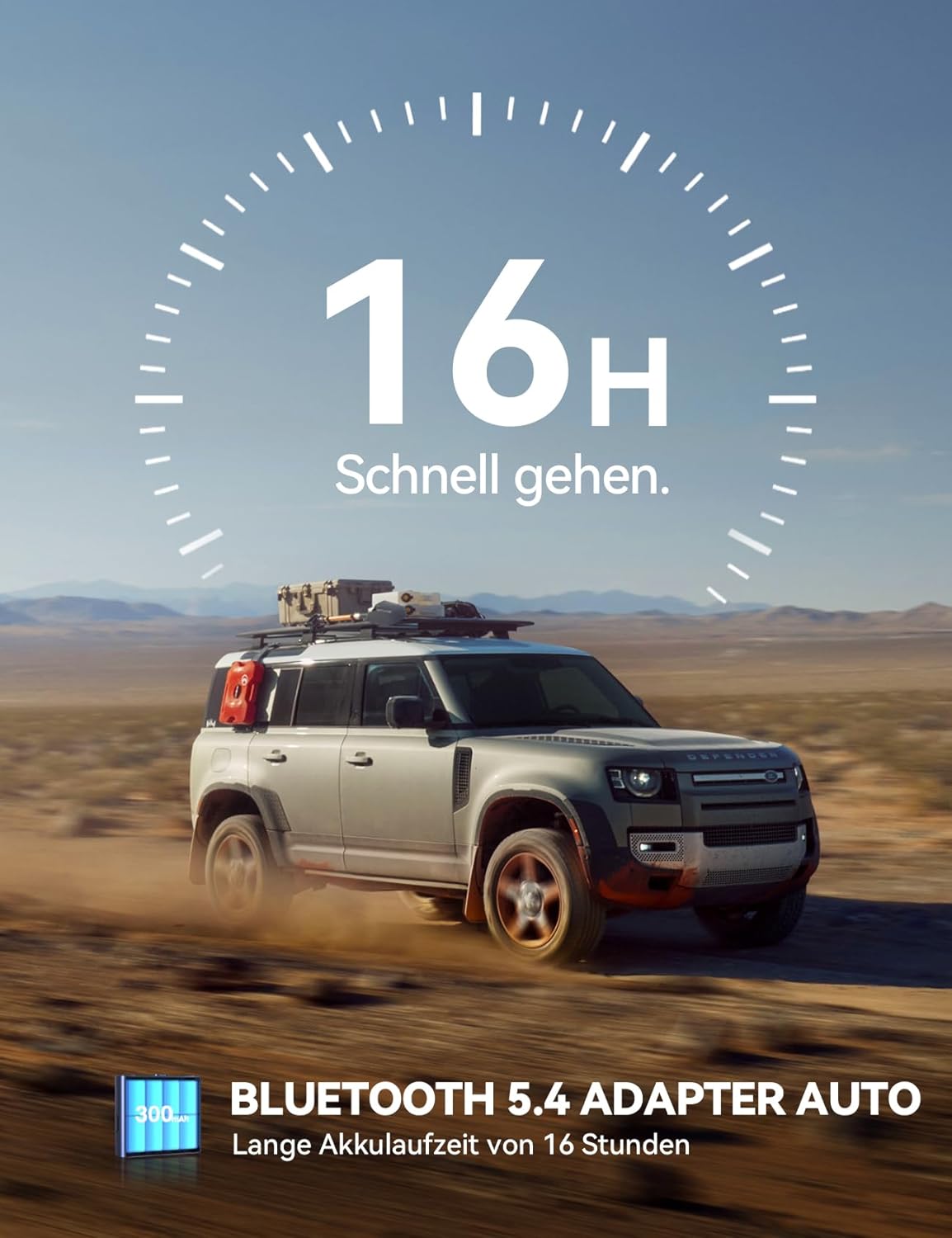 - 【Neuestes Bluetooth 5.4】- Der car bluetooth adapter bietet Ihnen eine schnellere, stabilere und intelligentere Verbindung mit weniger Verlust an Klangqualität. Optimiert für Verbindungsunterbrechungen und Verbindungsverzögerungen im Vergleich zu