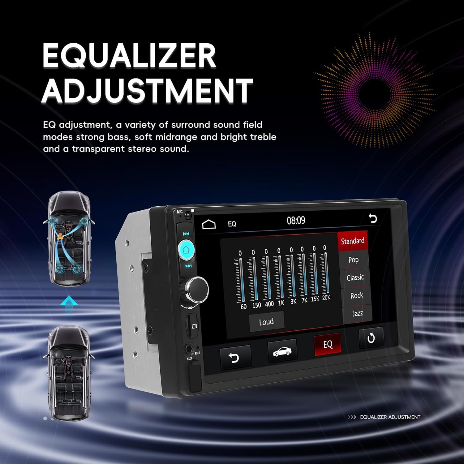 - Autoradio mit Bildschirm 7-Zoll: dynamische Menüoberfläche, sanft berühren. Mit TF/SD-Karte/USB/AUX-Anschluss auf der Vorderseite für Multi-Choice-Medienwiedergabemodi