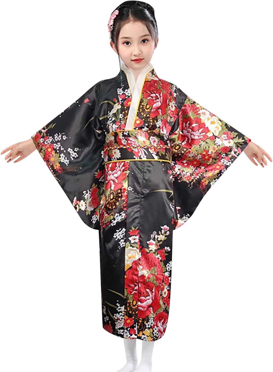 - Traditioneller Japanischer Kimono-Bademantel Für Kinder Und Mädchen, Seidenähnliches, Hochwertiges Satin-Polyester, Weicher Und Atmungsaktiver Stoff, Angenehm Tragen.