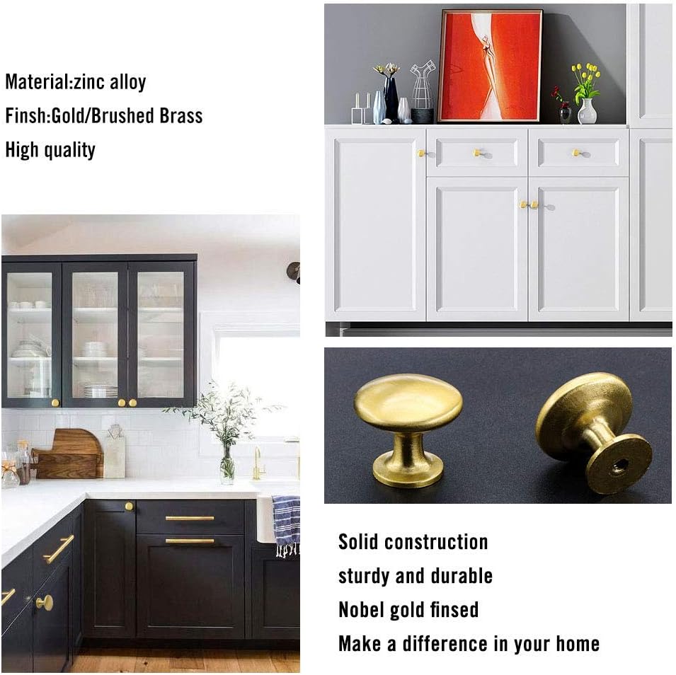 - Packung mit 20 runden Möbelknöpfen aus gebürstetem Messing, hochwertiges Zinklegierungsmaterial, solide Konstruktion