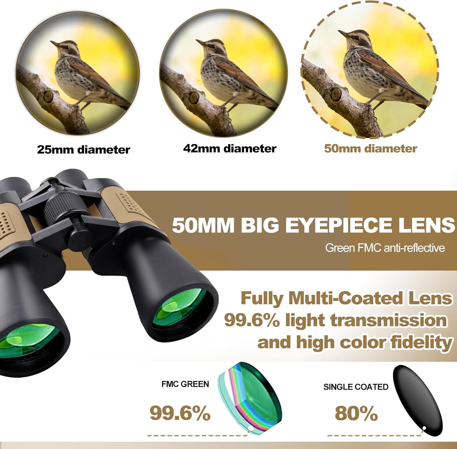 - 【Expansives Sichtfeld】20x50-Hochleistungs ferngläser mit 20-facher Vergrösserung, 56 m Sichtfeld auf 1000 m; 50-mm-Objektiv mit erstklassiger Klarheit und Helligkeit; Entwickelt für Outdoor-Aktivitäten wie Wandern, Trekking, Tier- und