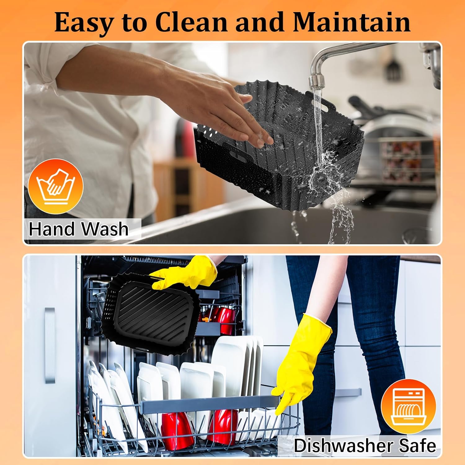 • 【Leicht zu reinigen und zu pflegen】 Die Einsätze für Heissluftfritteusen bestehen aus weichem, flexiblem Silikon und lassen sich leicht von Hand mit warmem Seifenwasser reinigen oder können bequem in die Spülmaschine gegeben werden. Diese