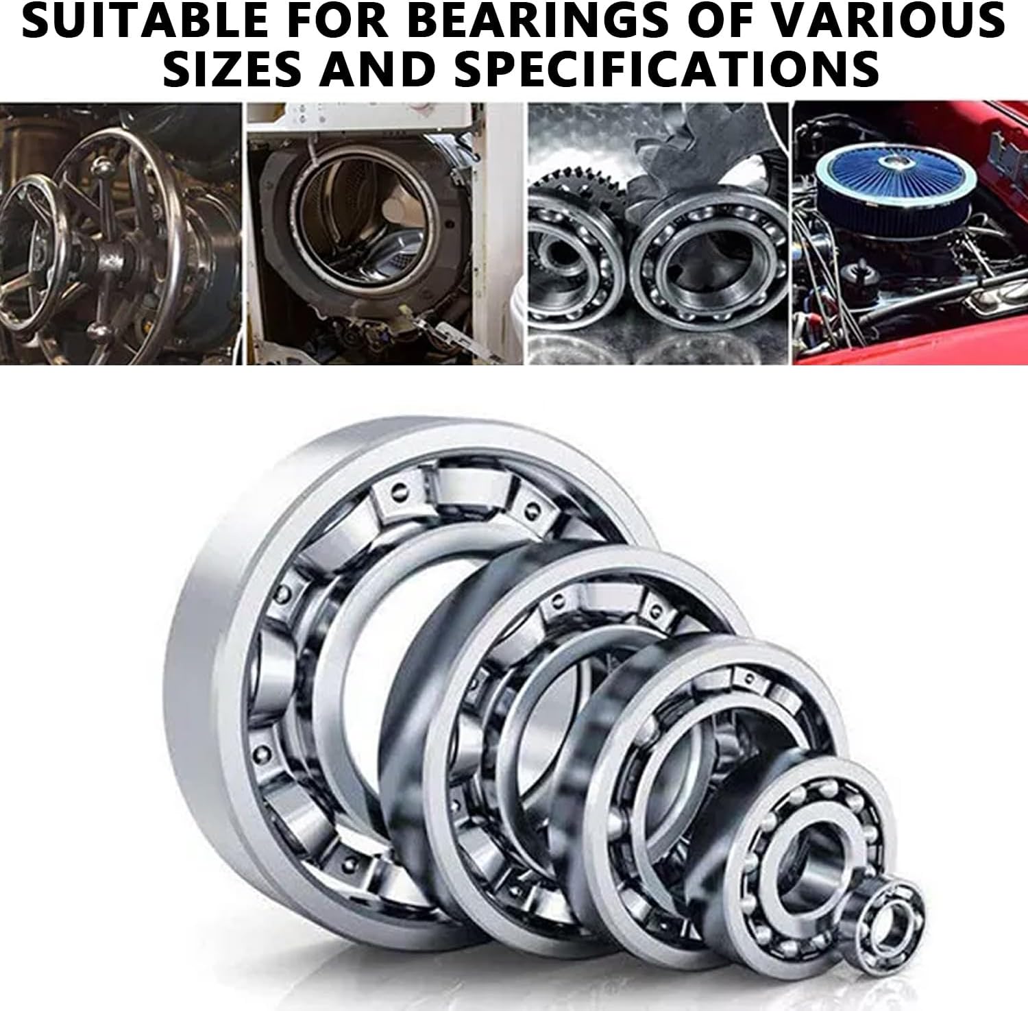 - Anwendbare Lagerspezifikationen: 6005/6006/6007/6008/6009/6010/6205/6206/6207/6208/6209/6210/6305/6306/6307/6308/6309/6310. Mit drei zusätzlichen Klauenhaken können weitere verschiedene Arten von Lagern, Zahnrädern und Sätzen entfernt werden.