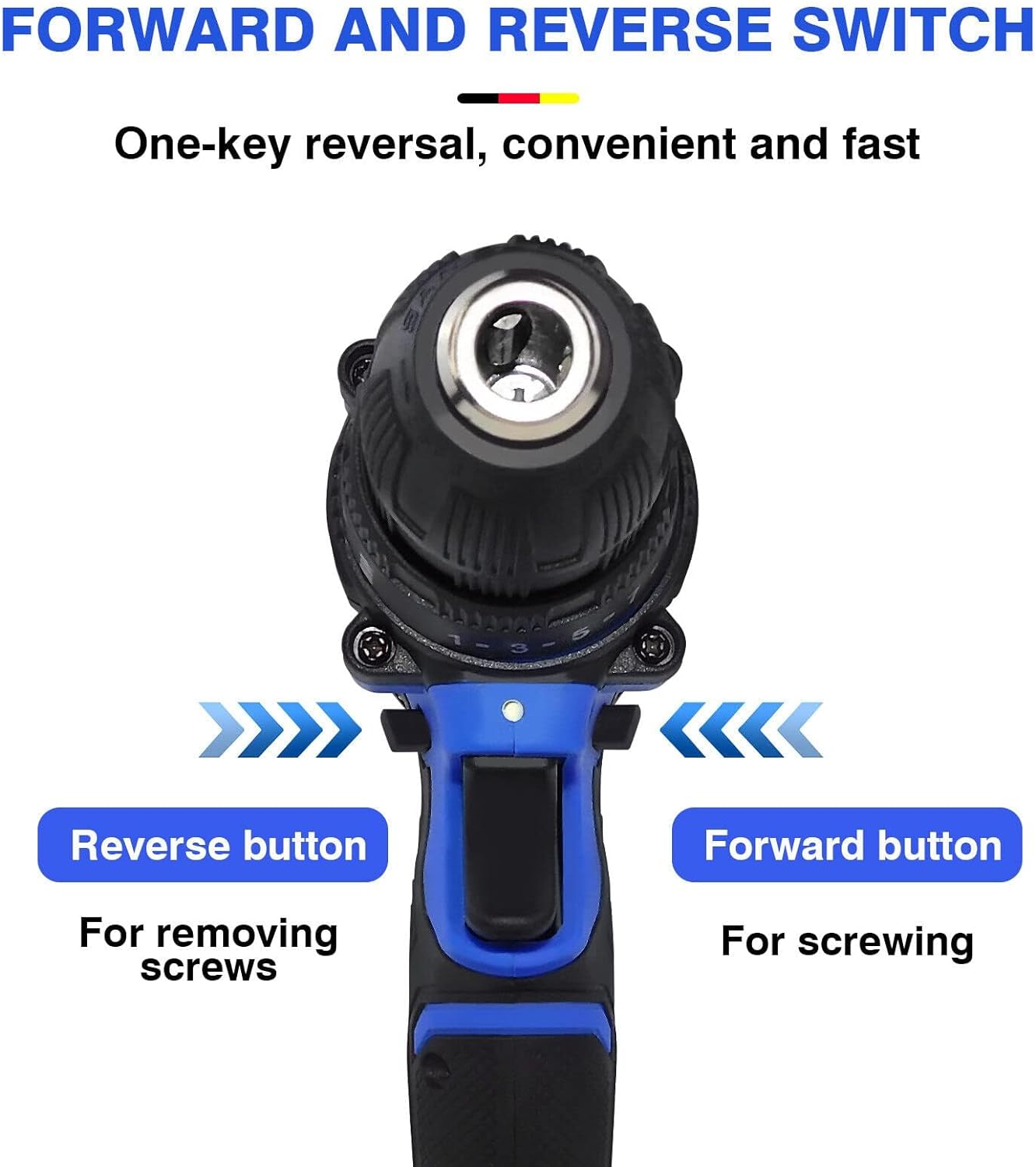 - Li-Ionen-Akku und Schnellladung: Akku-Bohrer mit 1-Lithium-Ionen-Akku (1500mAh), Schnellladung. Eingebautes LED-Licht beleuchtet die Oberfläche Ihres Projekts, wenn der Bohrer aktiviert wird, erhöht die Sichtbarkeit und ermöglicht es Ihnen, unter