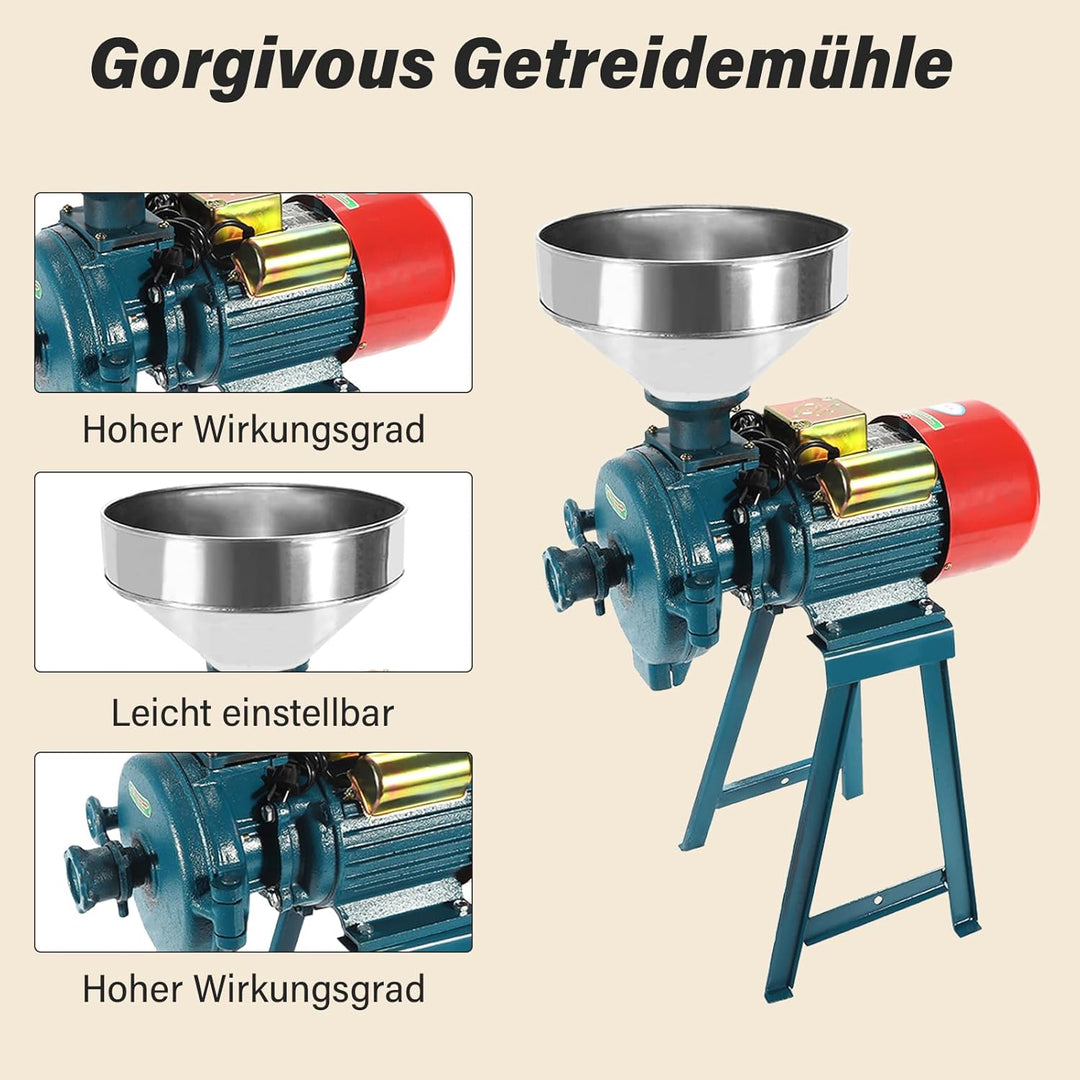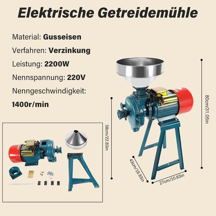 2200W 220V Getreidemühle, Elektrische Getreidemühle, Getreidemühle Mühle Nussmühle mit Trichter, Kom