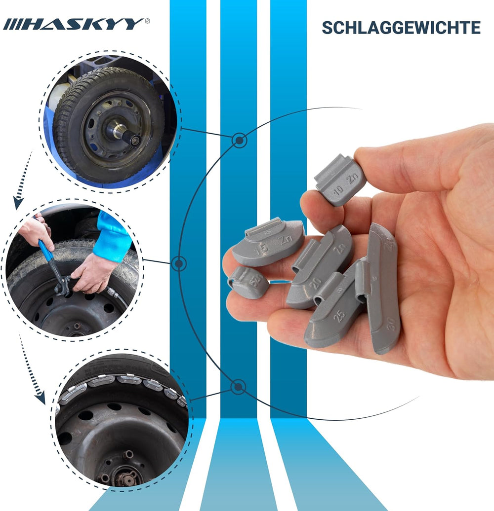 225x HASKYY Schlaggewichte Auswuchtgewichte Wuchtgewichte Sortiment für STAHLFELGEN // je 50 von 5g,