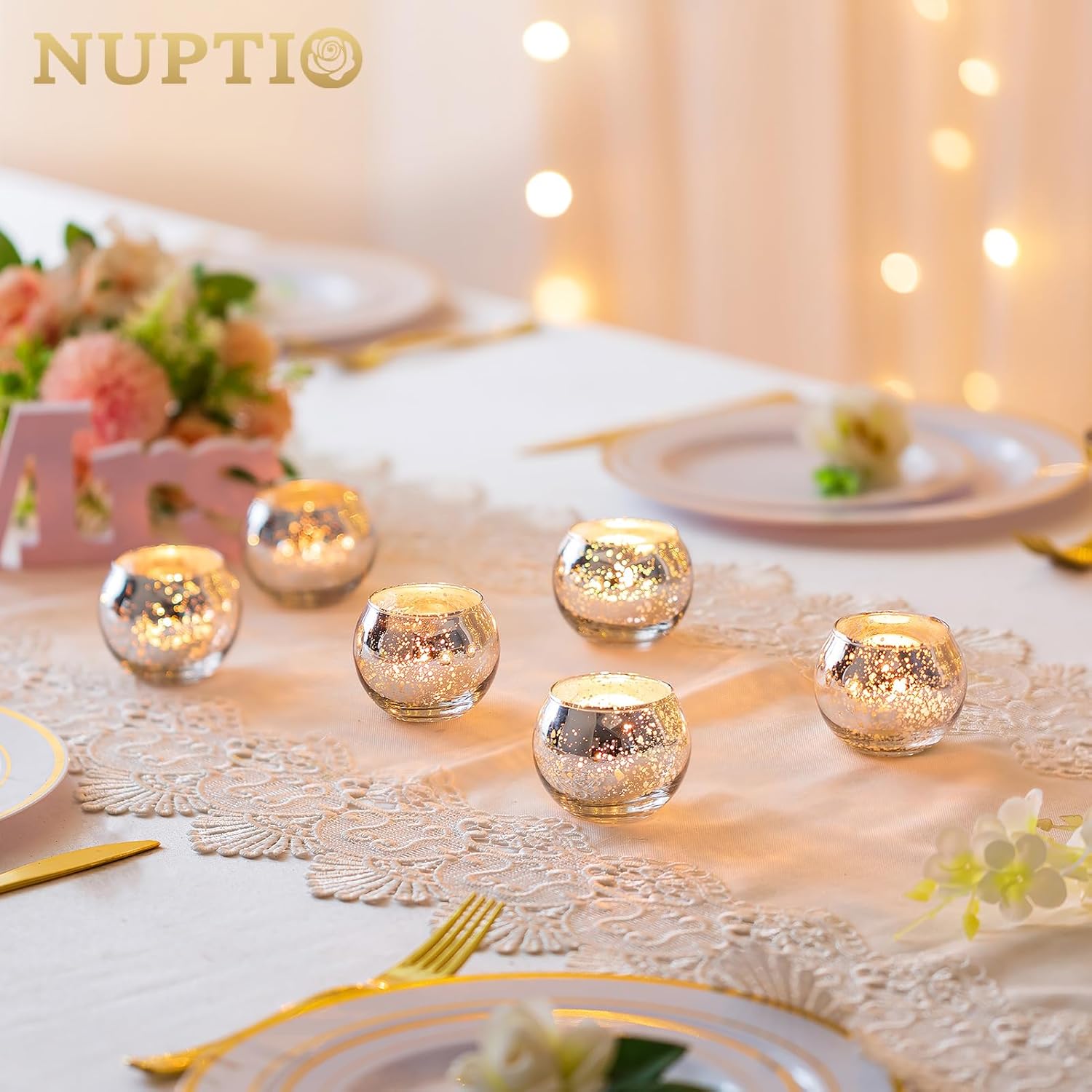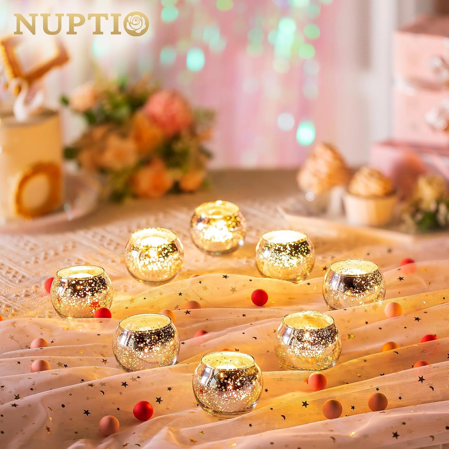 - ANTIK-GOLD-FINISH - Der mit Quecksilber gesprenkelte Effekt auf dem Teelichthalter verstärkt das natürliche warme Licht der Kerzen und verleiht ihm einen vintage, aber zeitlosen Look.Verwenden Sie diese Votive aus goldenem Quecksilberglas als Teil