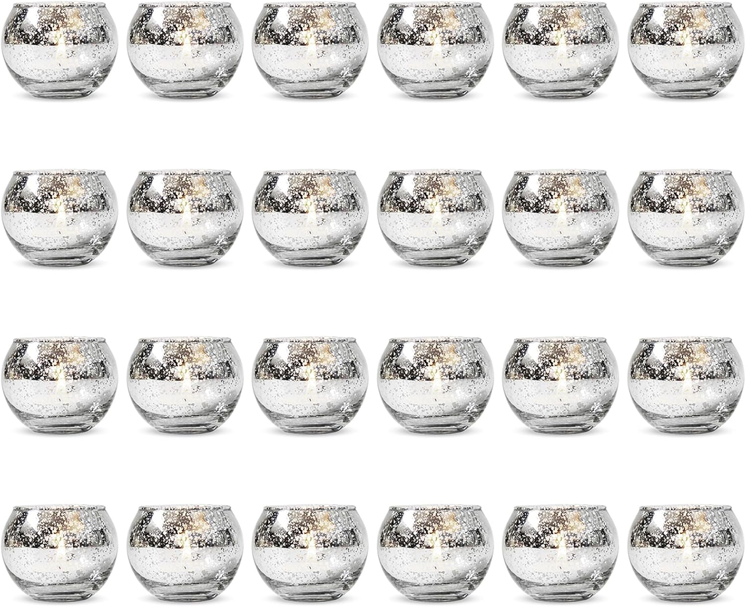 - NWENDUNGSBEREICH - Jeder Votivkerzenhalter aus Quecksilberglas hat einen Durchmesser von 5cm / 2ʺ (oben) und eine Höhe von ca. 5.8cm / 2.3ʺ. Funktioniert mit normalen Votivkerzen, Teelichtkerzen und flammenlosen Teelichtkerzen.