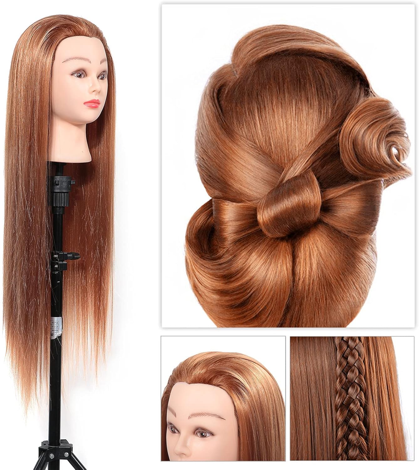 - Multifunktionale Verwendung: Der 24-Zoll-Friseursalon-Haartraining zum Üben von Schaufensterpuppenpuppen kann gestreckt oder gewellt werden. Er eignet sich auch für Schüler zum Üben von Flechten, Schneiden, Stylen usw., jedoch nicht zum Bleichen und