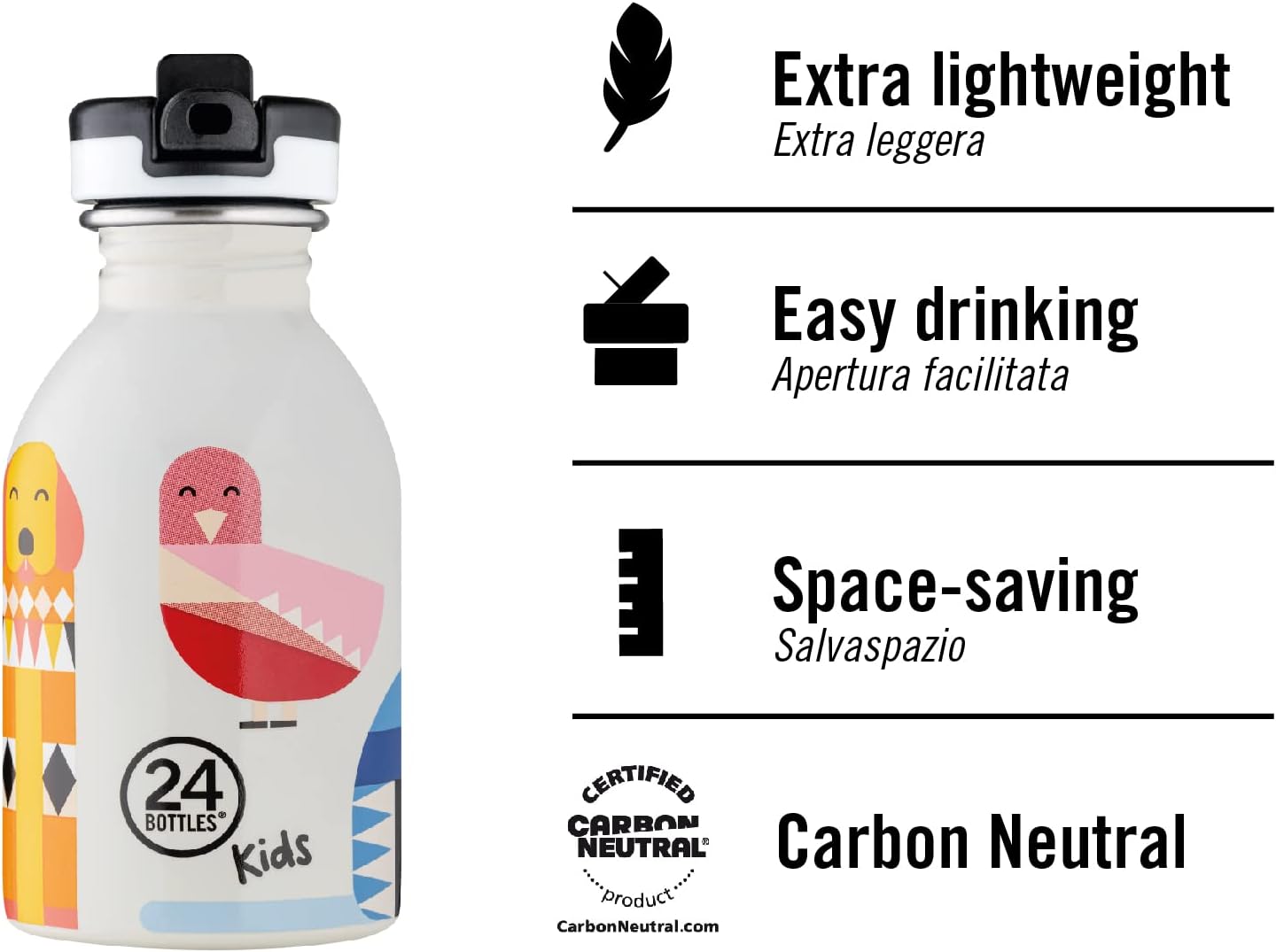 - Entworfen für Kinder: Die süsseste Kollektion ist unsere Kids Bottle, die Stahlflasche für Kinder, ideal nicht nur in Schulbänken, sondern auch für unterhaltsame Nachmittage, diese kleinen 250/500 ml Flaschen haben eine einfache Handhabung für