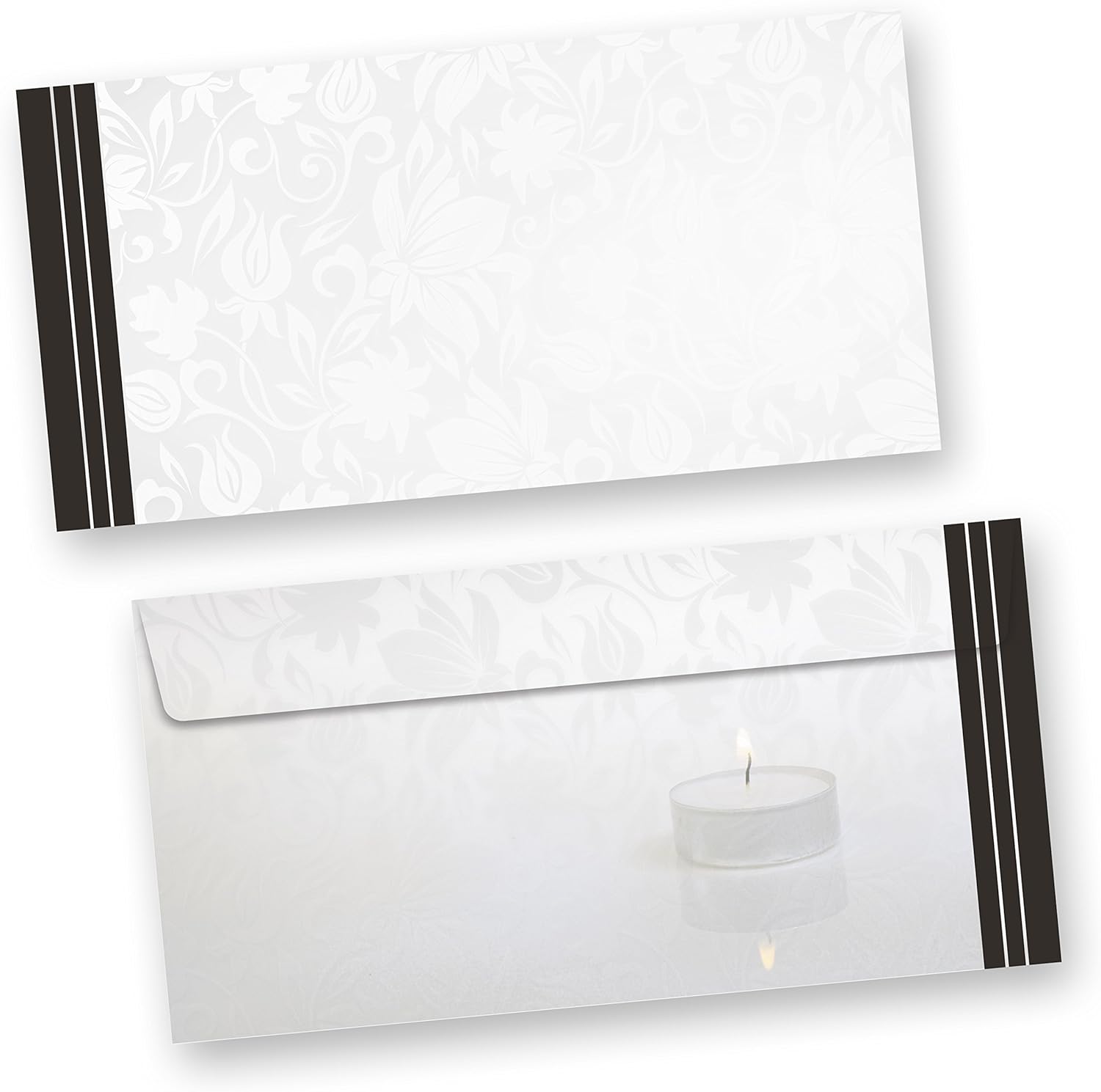 - 25 elegante Trauer-Briefpapiere und 25 Trauer-Briefumschläge ohne Fenster, beidseitig bedruckt