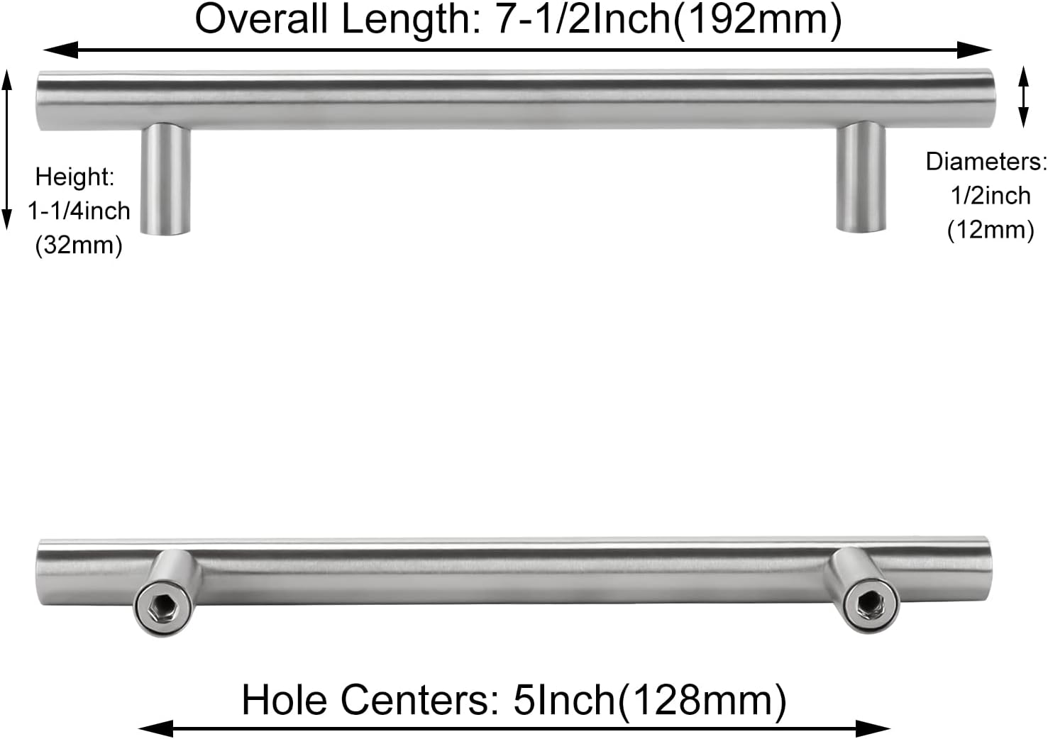 - MESSUNG: 128 mm Mitte zu Mitte mit 192 mm Gesamtlänge.
