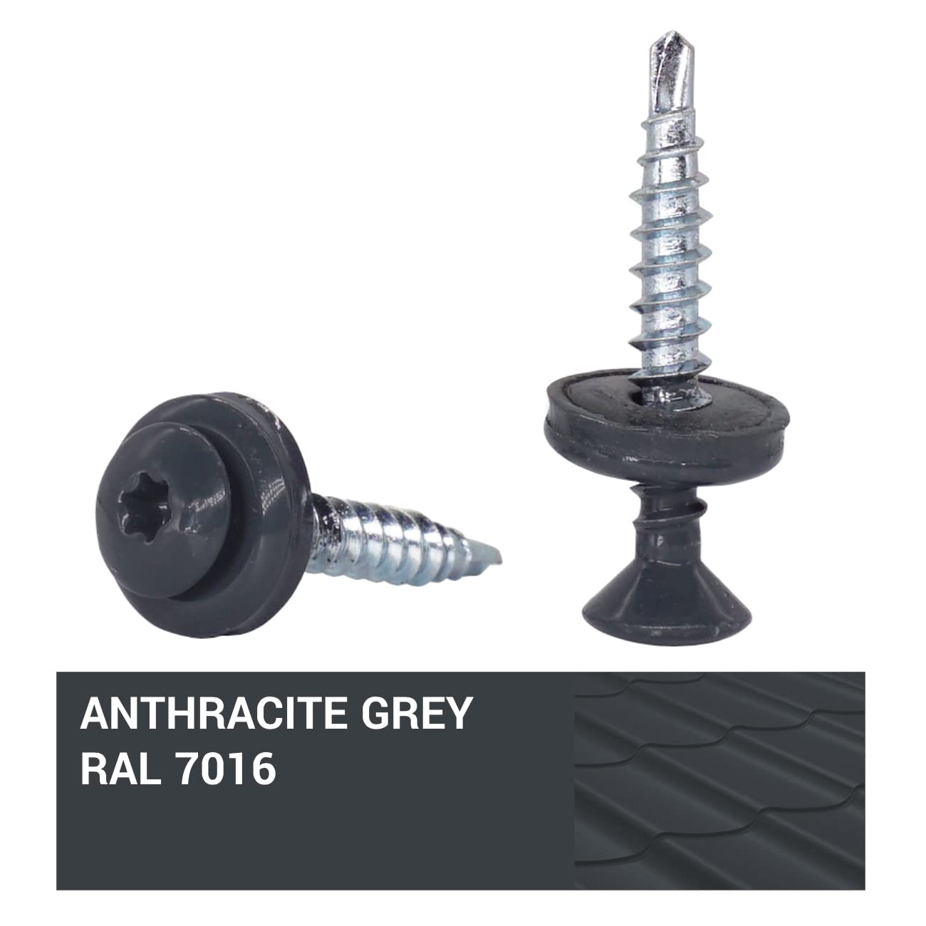 - ✔️ Verpackung: 250 Stück Schrauben Grösse: 4,8 x 35 mm Schraubenkopf und Unterlegscheibe Farbe: anthrazit (RAL 7016) 1 x Schraubendreher-Bit ist im Lieferumfang enthalten. DIN 7504-K Norm
