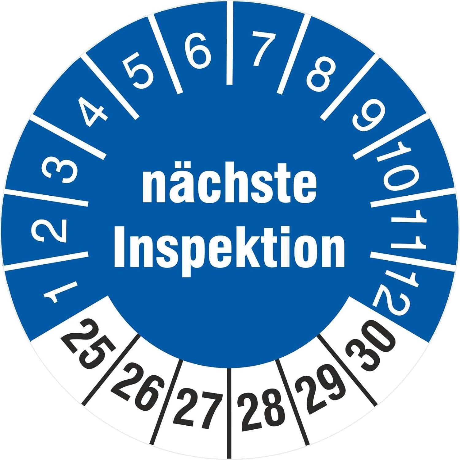 2500 Prüfplaketten nächste Inspektion 18 mm Prüfetiketten 2025-2030 2500 18mm Durchmesser, 2500 18mm