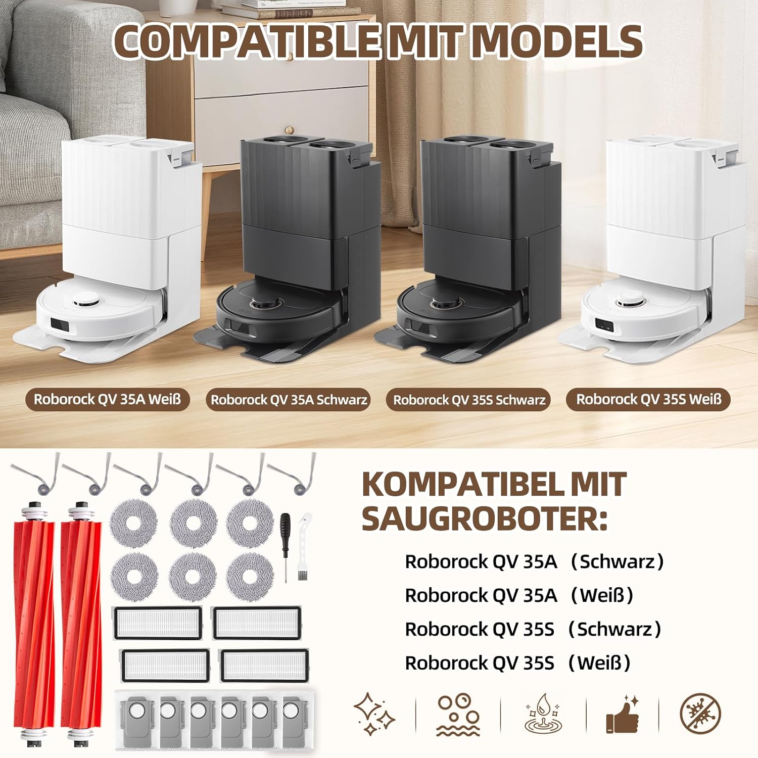 - 🥇【Kompatible Staubsauger Modelle】Ersatzteile Zubehör nur für Roborock QV 35A / QV 35S Staubsauger Roboter, Nicht für andere Modelle geeignet. Bitte bestätigen Sie das Modell vor dem Kauf.