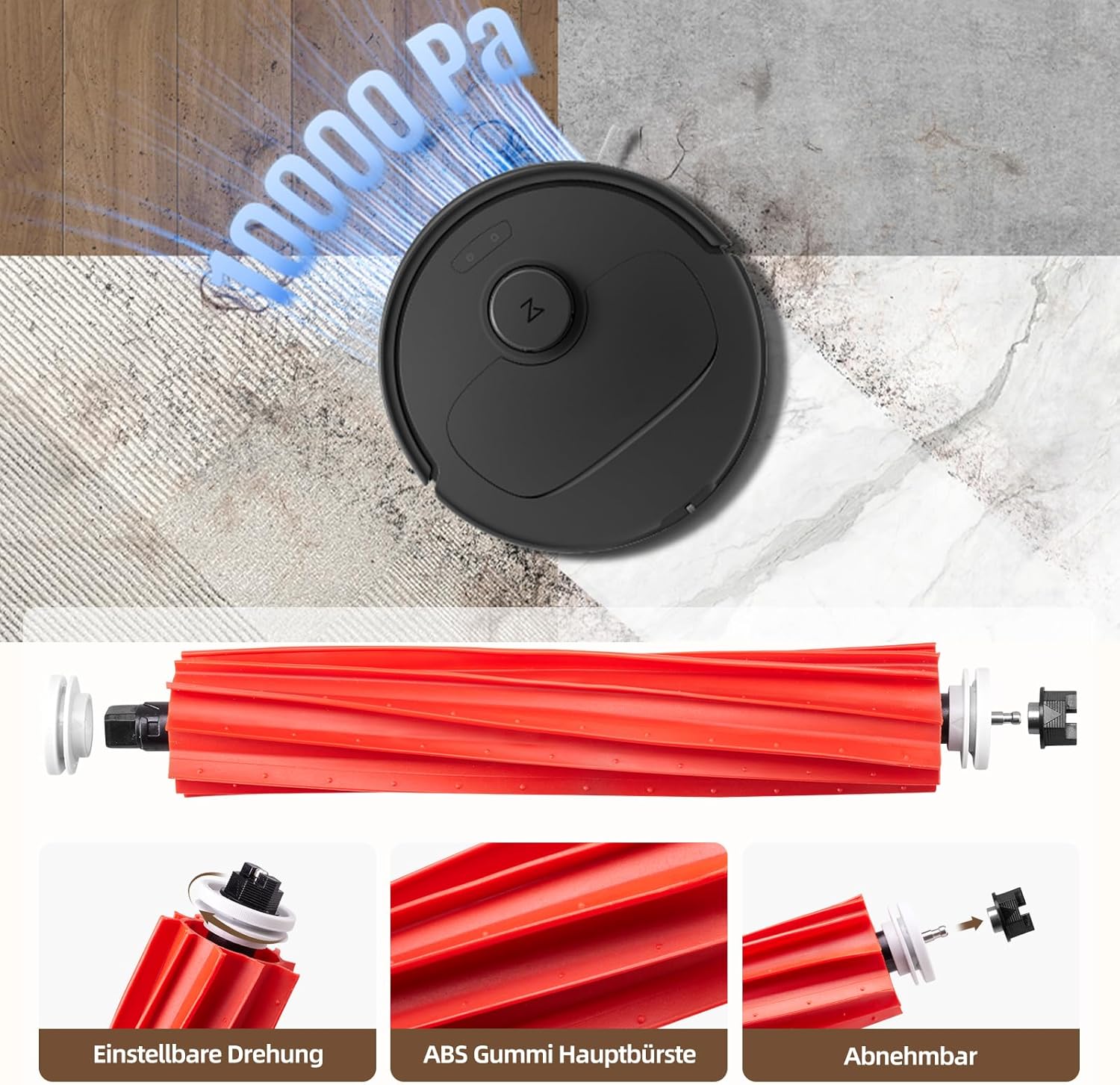 - 🏆【Hauptbürste und Seitenbürste】Ausgewählte Hauptbürste aus hochwertigem ABS-Gummi, entfernt Schmutz effizient, verheddert sich nicht in Haaren, arbeitet reibungslos und ohne Lärm. Seitenbürste besteht aus 300 Nylonborsten, die tief in die