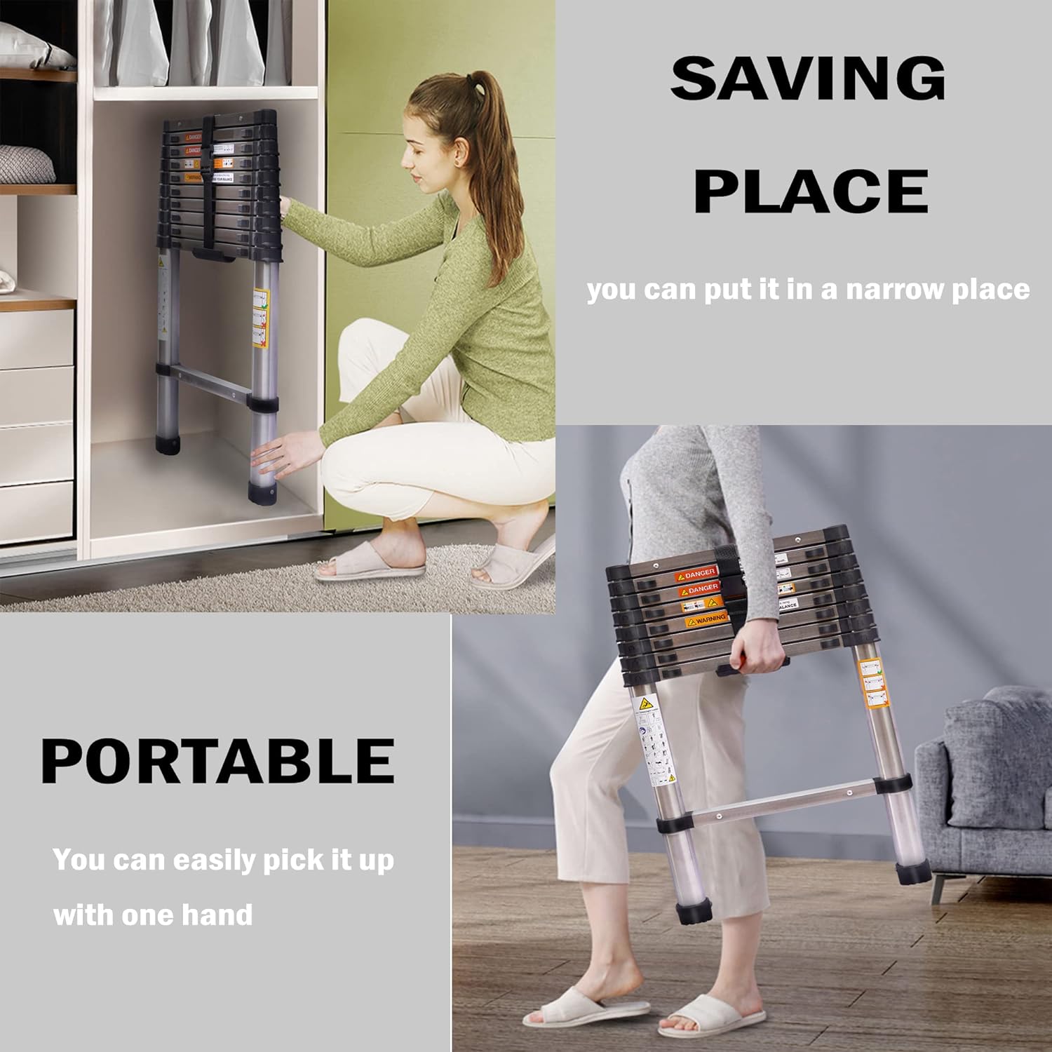 - ❓❓❓Wie wählt man eine Edelstahl-Teleskopleiter oder eine Aluminium-Teleskopleiter? Wenn Sie Tragbarkeit wünschen, sind teleskopierbare Aluminiumleitern besser für Sie. Wenn Sie mehr Stabilität wünschen, ist die Edelstahl-Teleskopleiter besser