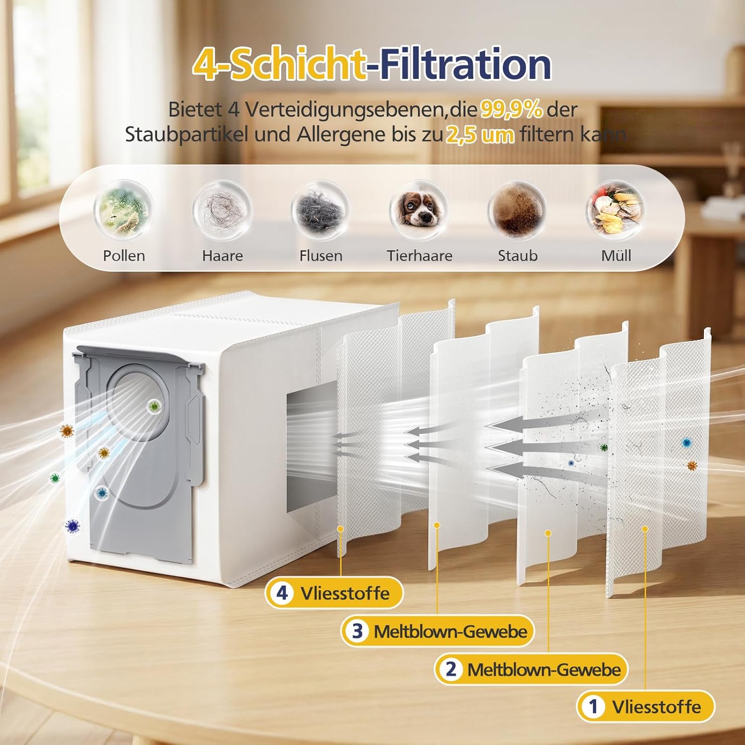 - 【HEPA-Filter & Dauerhaft Seitenbürste】Hocheffiziente ersatz filter helfen dabei, 99,9 % des Staubs, Pollen, Tierhaare und kleiner Partikel bis zu 0,3 Mikrometern zu entfernen. Ideal für Allergiker und hygienebewusste Haushalte.Die Seitenbürste aus