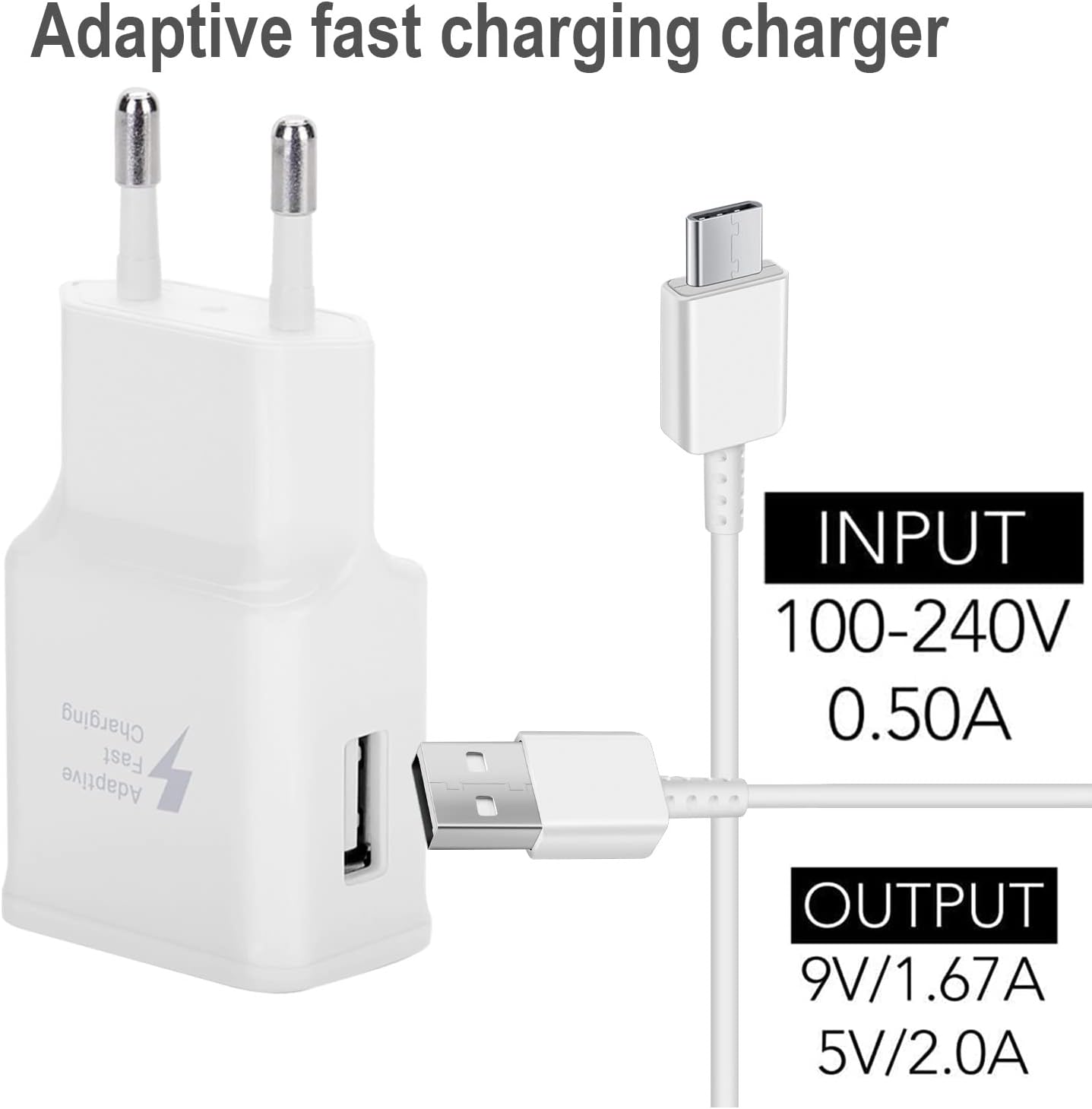 - Adaptive Fast Charging Typ-C-Ladekabel: Das Adaptive Fast Charger lädt den Akku des Telefons in 30 Minuten auf 50 % auf, 75 % schneller als ein Standardladegerät. Typ-C-Schnellladekabel für schnell ladende Samsung-Ladegeräte.
