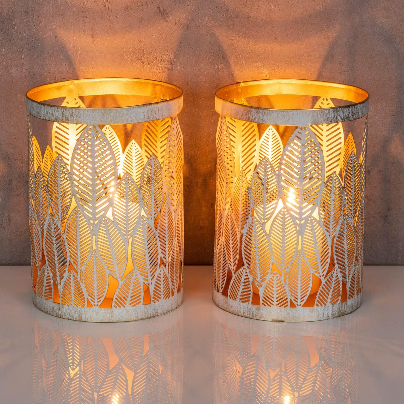 - Windlichter sind filigran mit einem Blumen- / Blattdekor gestaltet