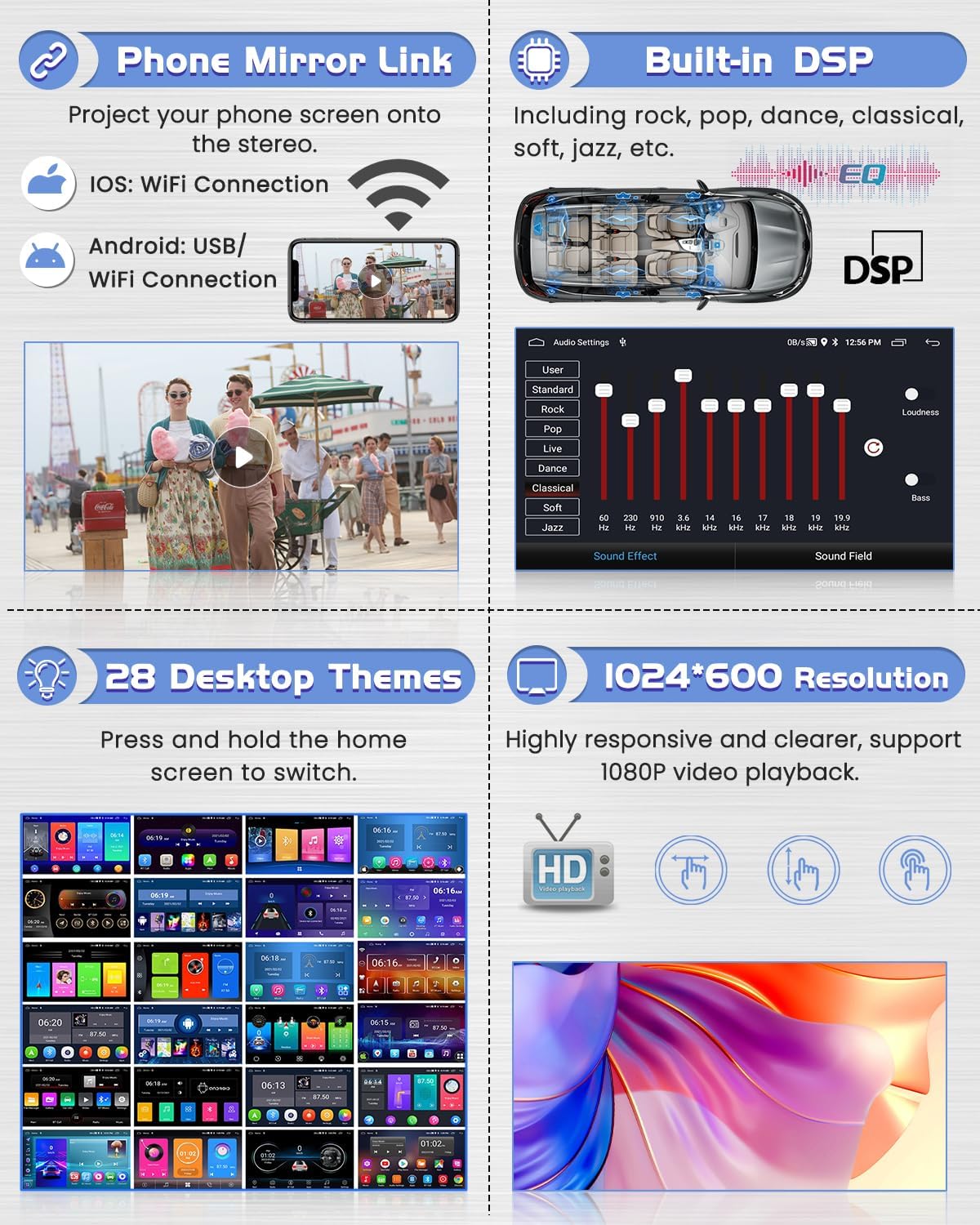 • Intelligente drahtlose Carplay/Android Auto/Mirror Link: Radio Android für Ford Fiesta kann über ein iPhone/Android-Telefon mit CarPlay/Android Auto verbunden werden. Nach Abschluss der Verbindung können Navigation, Kommunikationsinformationen, Anrufe