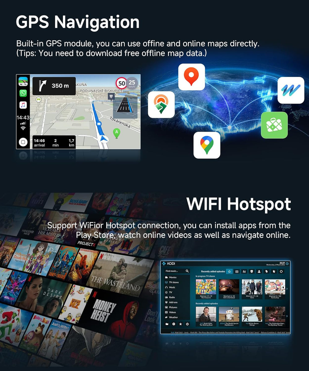 - 🚘【GPS Navigation & WIFI & Android System】Autoradio für Suzuki Swift 2011-2017 mit Android System. Navigieren Sie mit dem integrierten GPS-Modul, das Online- und Offline-Karten unterstützt, präzise und einfach. Sie können auch die