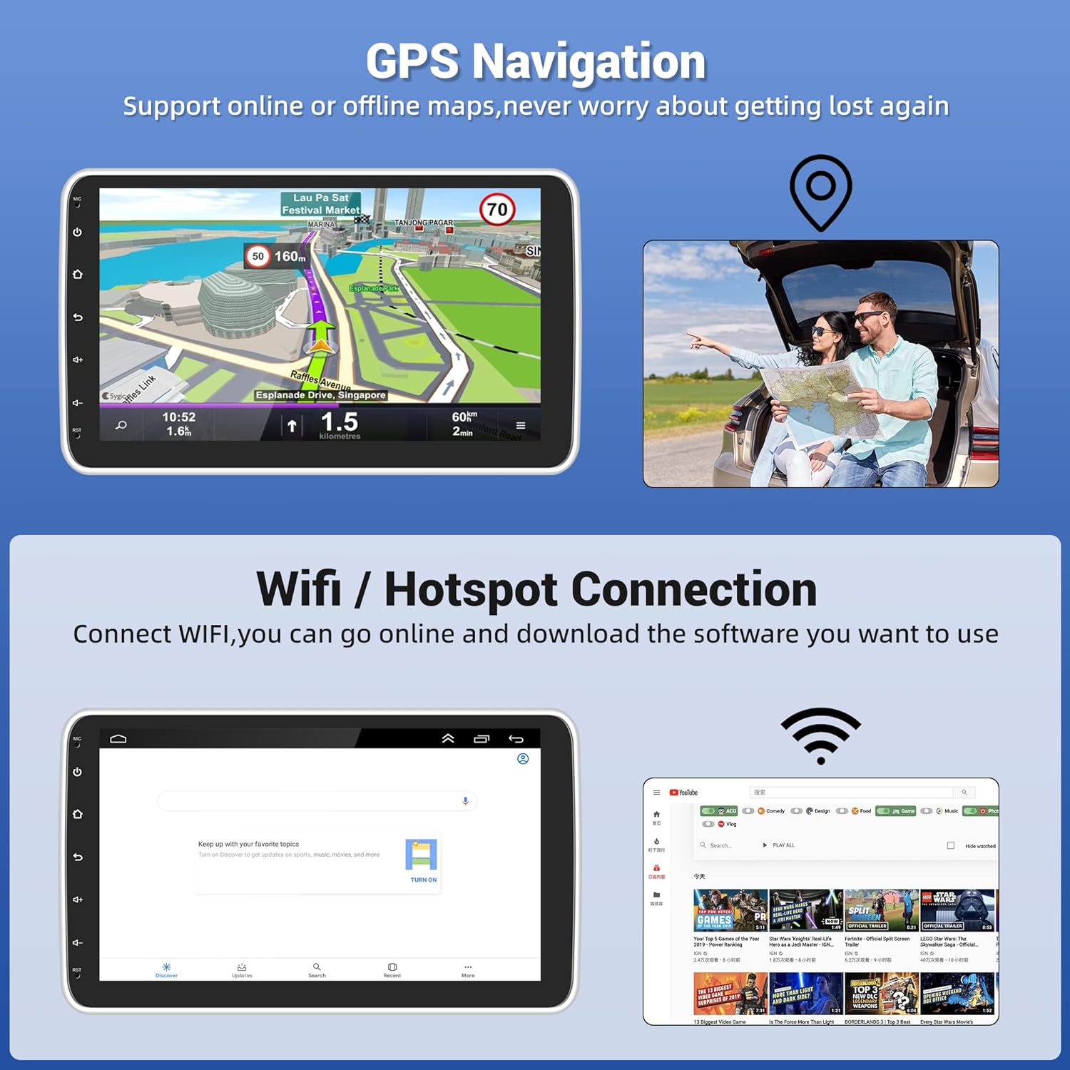 - 3️⃣【GPS Navigation & WIFI & Android System】 Dies ist ein Auto Radio mit Android System 11.0. Integrierte GPS-Navigation und WIFI, Benutzer können die Offline-Navigation direkt im Play Store erwerben. Nach der WLAN-Verbindung kann Google Maps