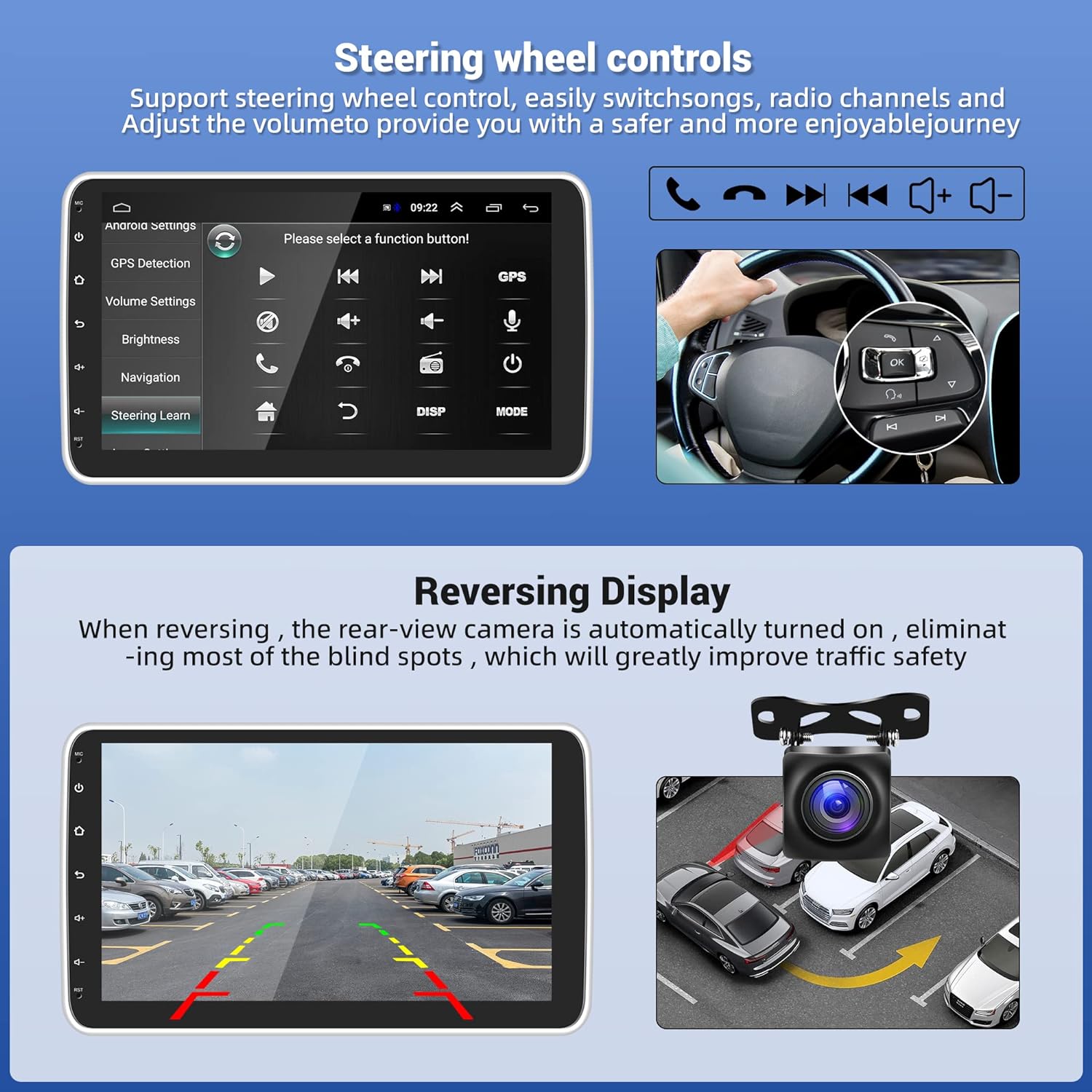 - 5️⃣【Rückfahrkamera & Lenkradsteuerung】Autoradio Carplay 1 Din mit AHD Rückfahrkamera,mit einfacher Installation und Bedienung Rückfahrkamera,wenn das Fahrzeug in den Rückwärtsgang schaltet,zeigt der Bildschirm des Autoradios automatisch das