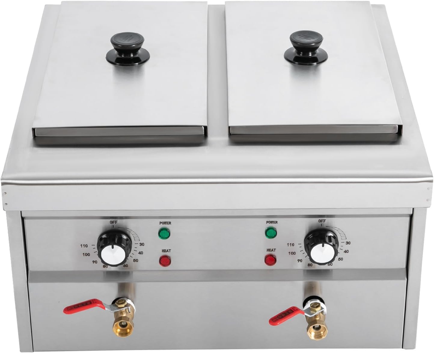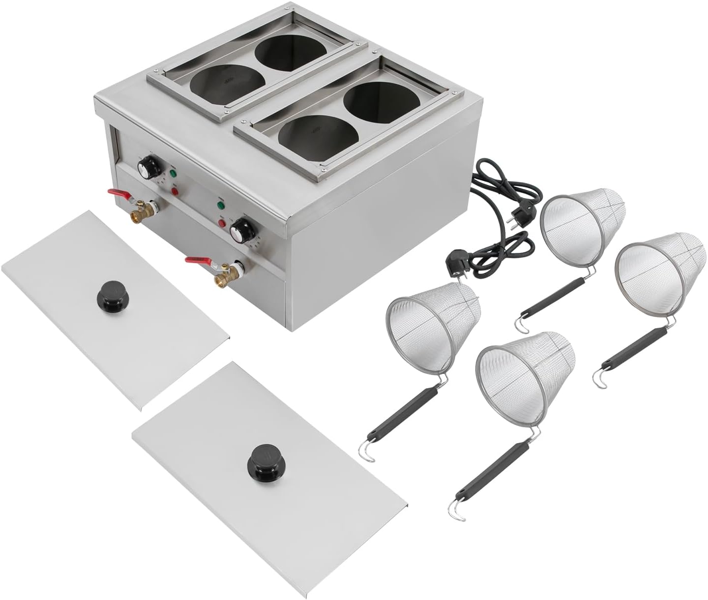 - 🍜LEISTUNGSFÄHIGE FUNKTION: 2*2KW Leistung, 2*2,34 Gallonen Fassungsvermögen, hochwertiges Heizelement, ermöglicht es Ihnen, Nudeln schnell und effizient zu kochen, um die Bedürfnisse der Geschmacksknospen vieler Menschen zu erfüllen, und die