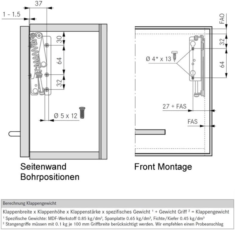 - Für kleine bis mittelgrosse Klappen / Keine Scharniere im Oberboden notwendig!