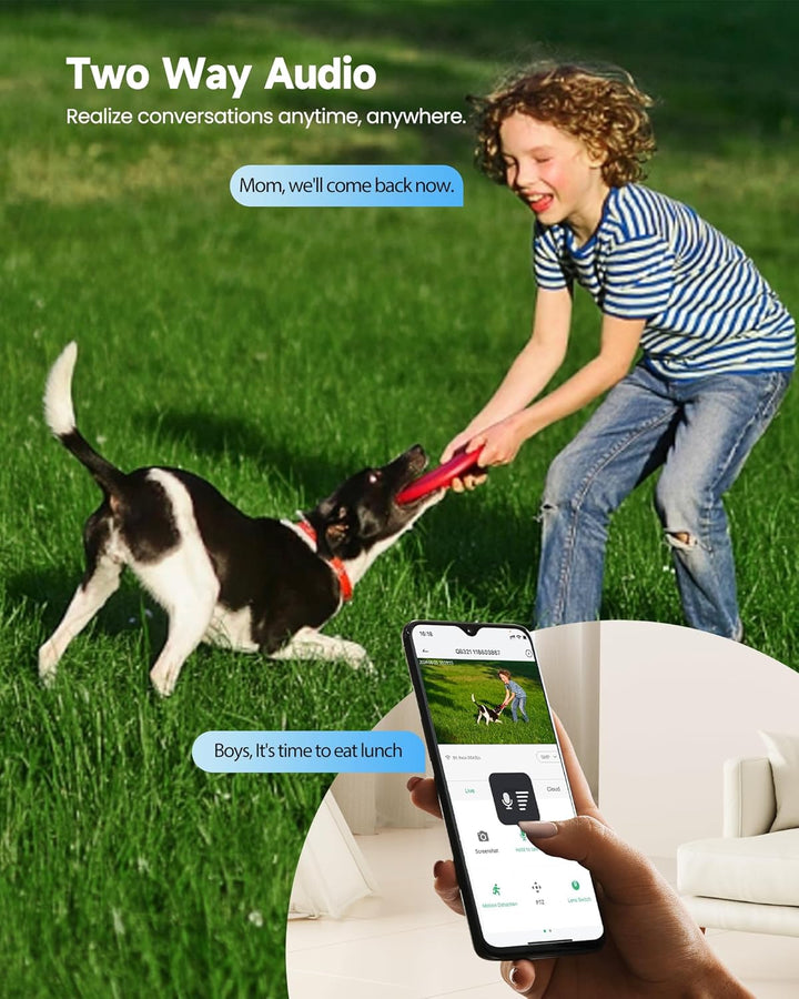 - 【Bewegungs- und Geräuscherkennung & IP66】Die aussenkamera Bewegung und Geräusche automatisch erkennen. Die outdoor kamera sendet eine Warnmeldung an Ihr Telefon. Sie können die Empfindlichkeit des Alarms einstellen. Dies reduziert Fehlalarme, die