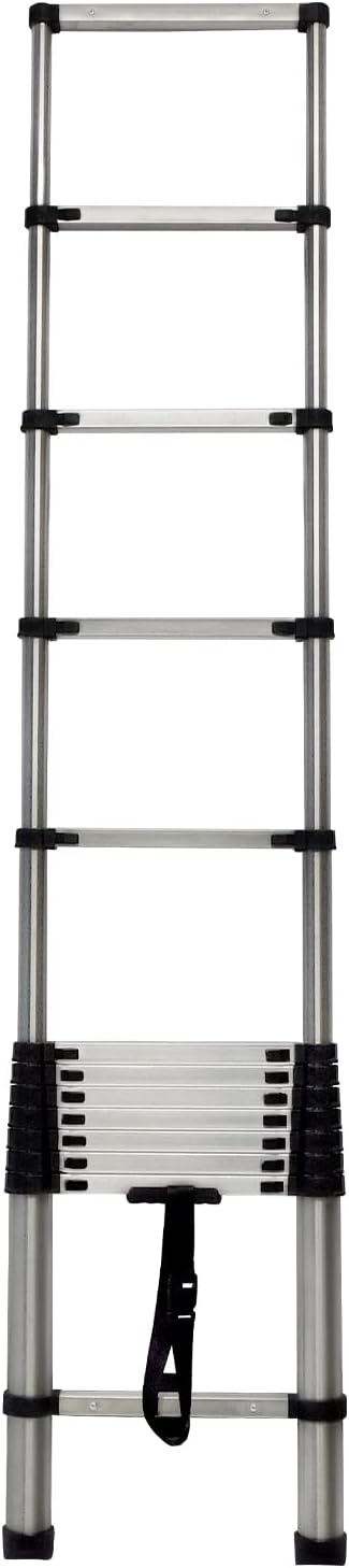- Tragbar und praktisch: Kompakte und erweiterbare Grösse, einfach zu transportieren und zu lagern; Ein strapazierfähiger Verschlussgurt sichert die Leiter fest und ist leicht zu tragen.