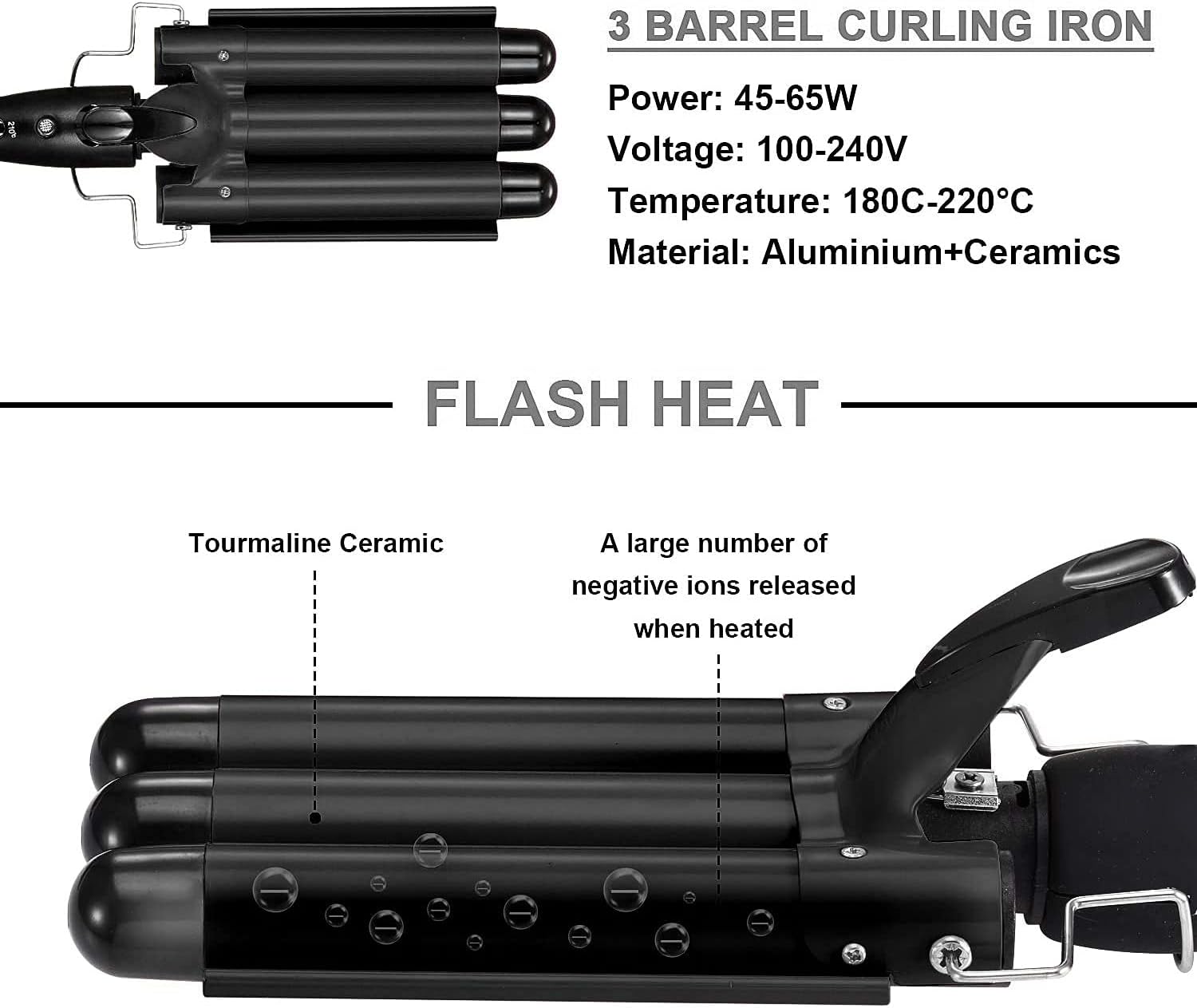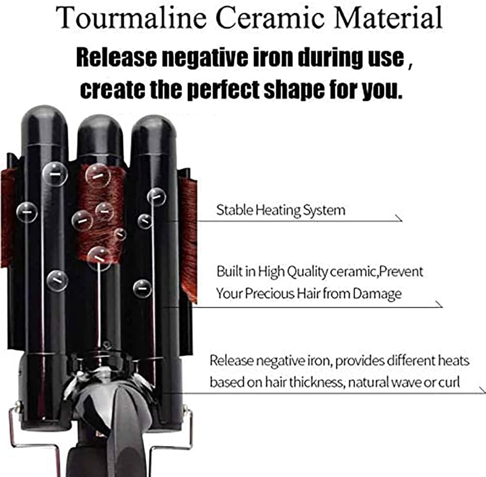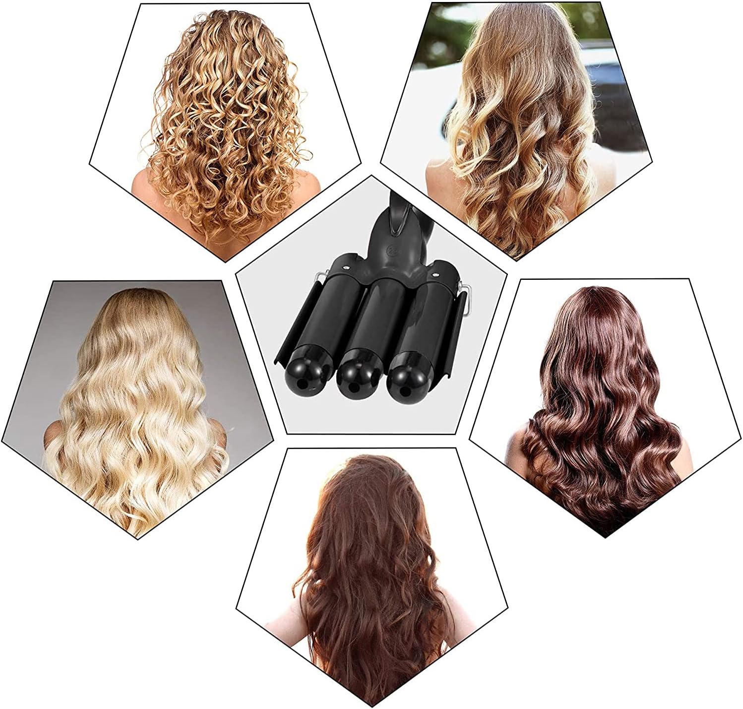 - Geeignet für alle Haartypen: Das Curling Artefakt mit drei Balken kann auf allen mittellangen bis langen Haaren angewendet werden. Natürlich ist langes Haar die beste Wahl. Erhitzte Keramik erzeugt negativ geladene Ionen die weiche und glänzende