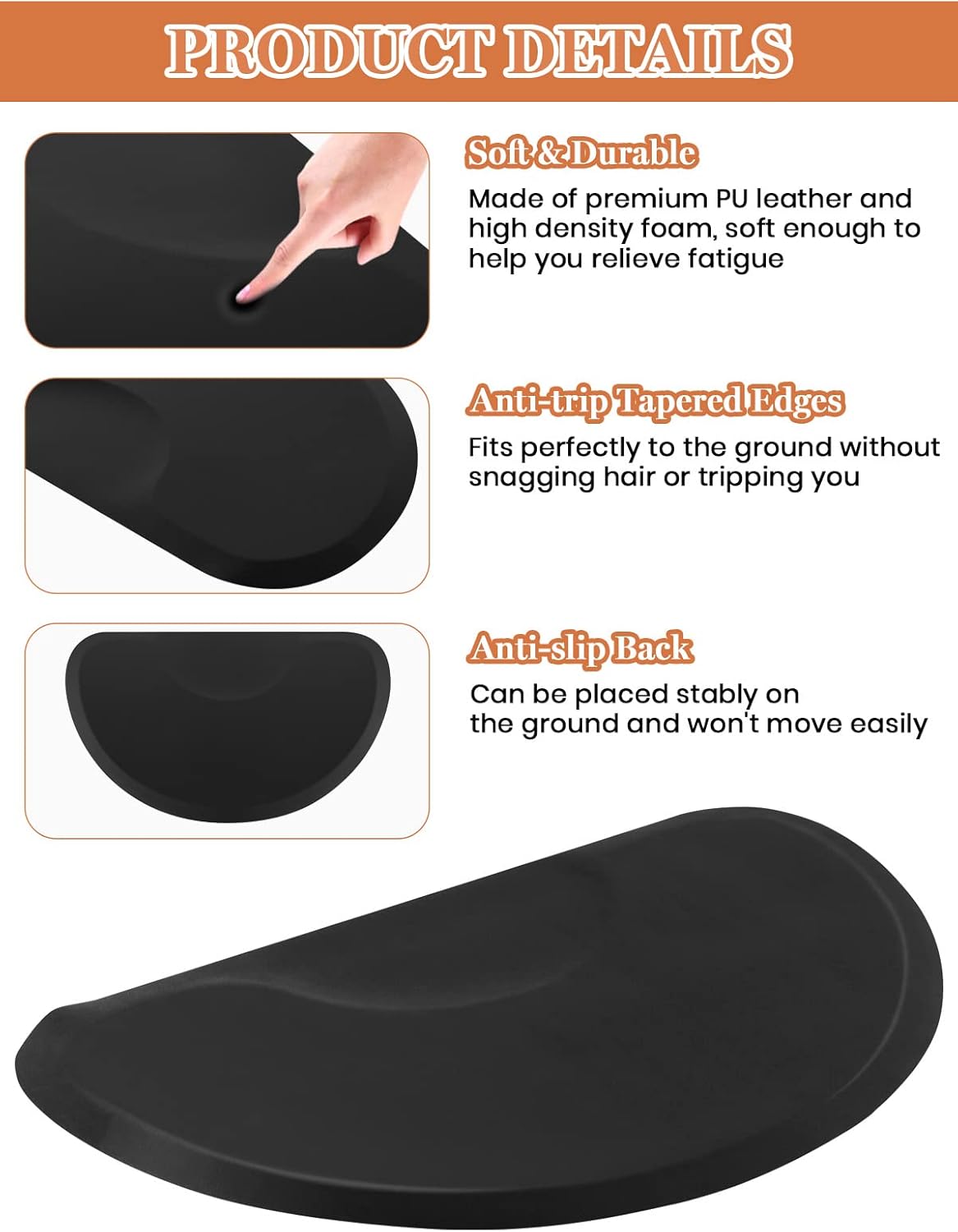 - ✔ Leicht zu reinigen: Die Anti-Ermüdungs-Bodenmatte mit mattschwarzer Oberfläche verfügt über eine glatte Oberfläche, die sich leicht abwischen lässt. Ganz gleich, ob es sich um Haarfärbemittel, Haare oder Staub handelt, sie lässt sich leicht