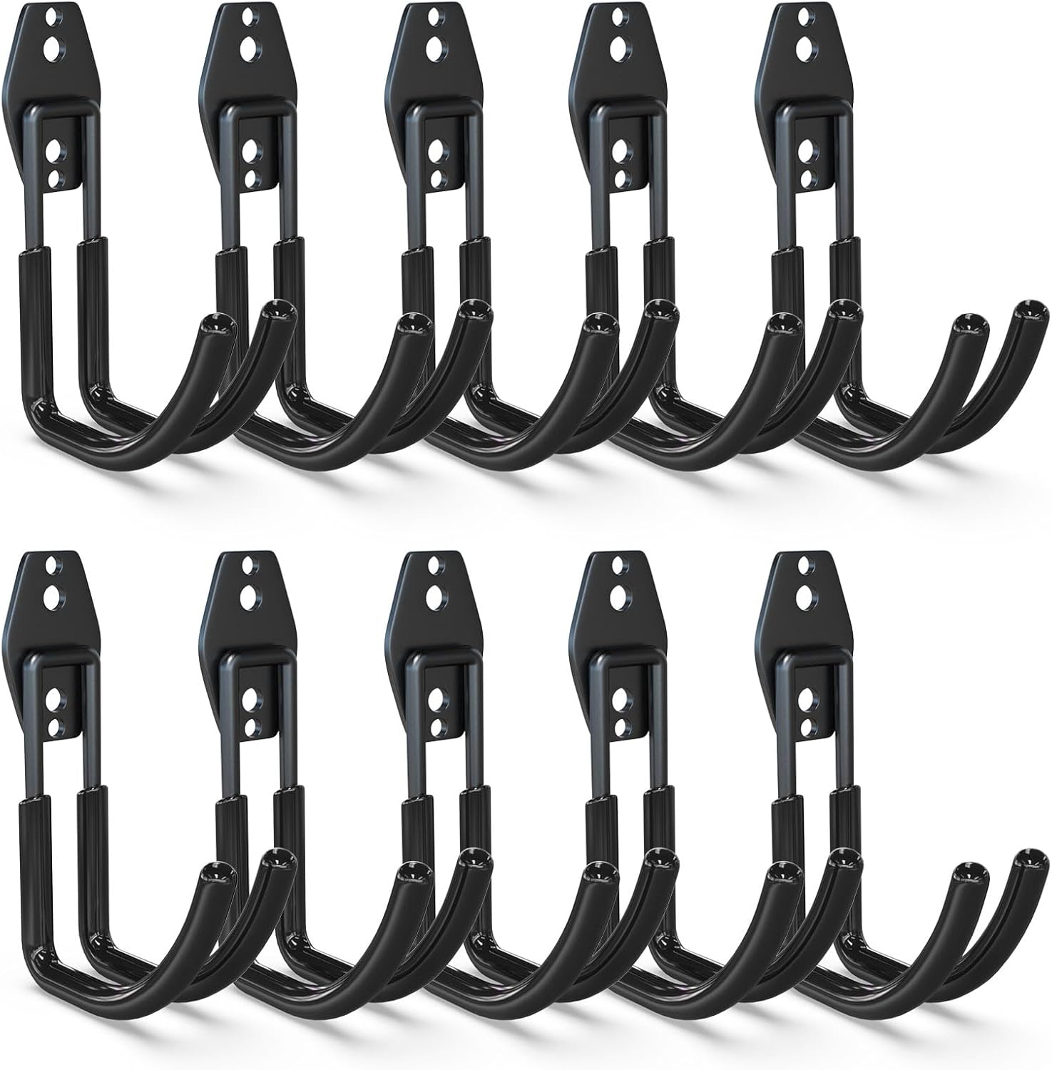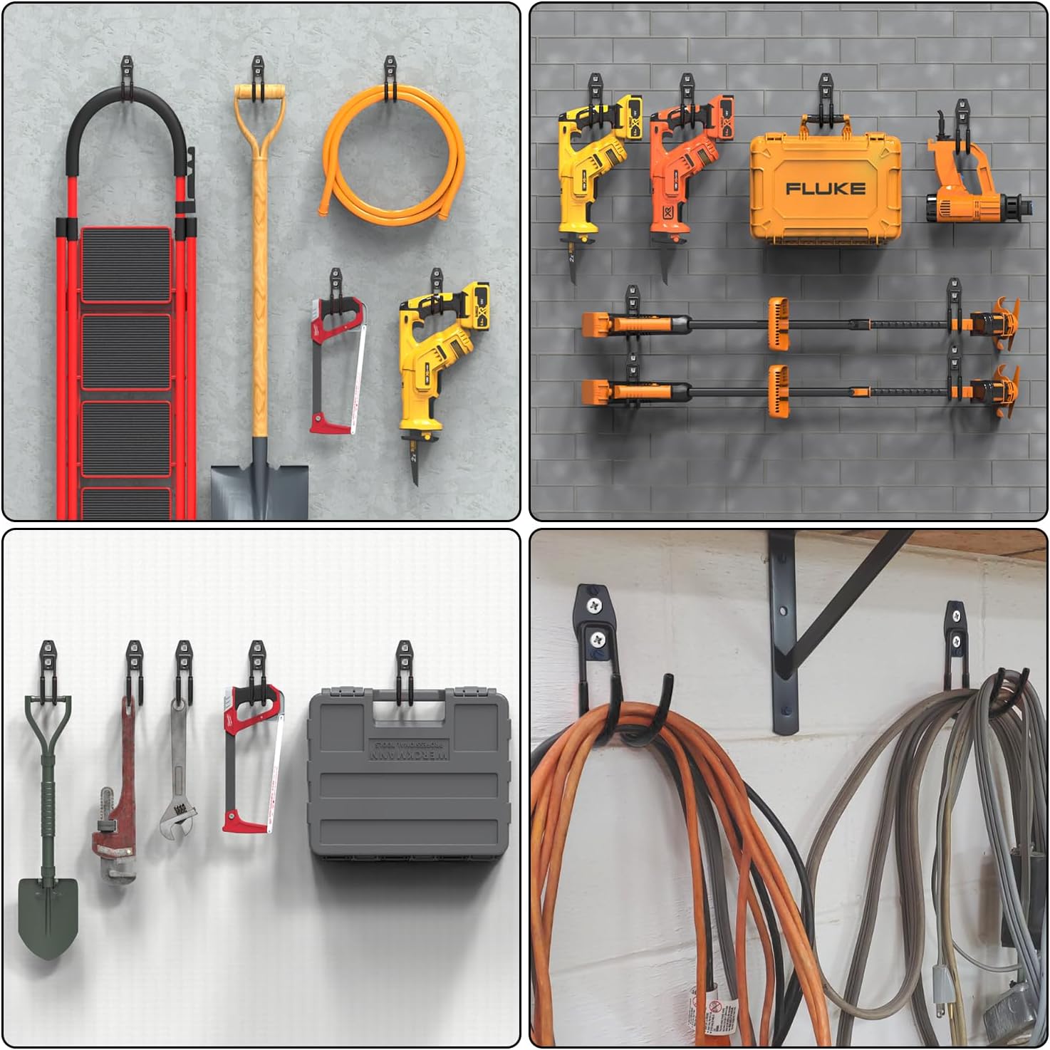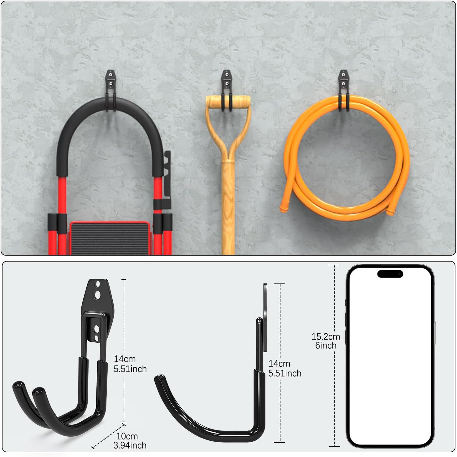 - ★ --Perfekt für schwere Objekte-- Wand Doppelhaken. Die erweiterte Länge und Anti Rutsch Beschichtung können Sie organisieren und hängen schwere Gegenstände für bis zu 40lbs.Doppelhaken-Design, geeignet zum Aufhängen von Luftschlauch, Garten-