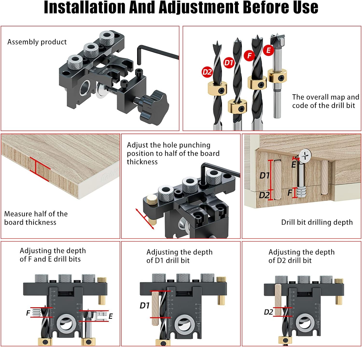 - Einfach zu bedienen: Mit einer verstellbaren Bohrvorrichtung, ist es bequem und einfach für Sie, schnell vertikale Löcher zu bohren, um die Schrauben in Holzmöbeln zu verstecken, präzise Holzbearbeitungslöcher, mit einer Hand zu greifen, einfach zu