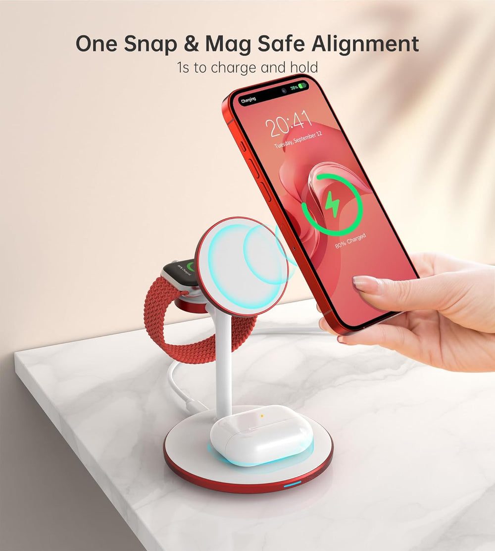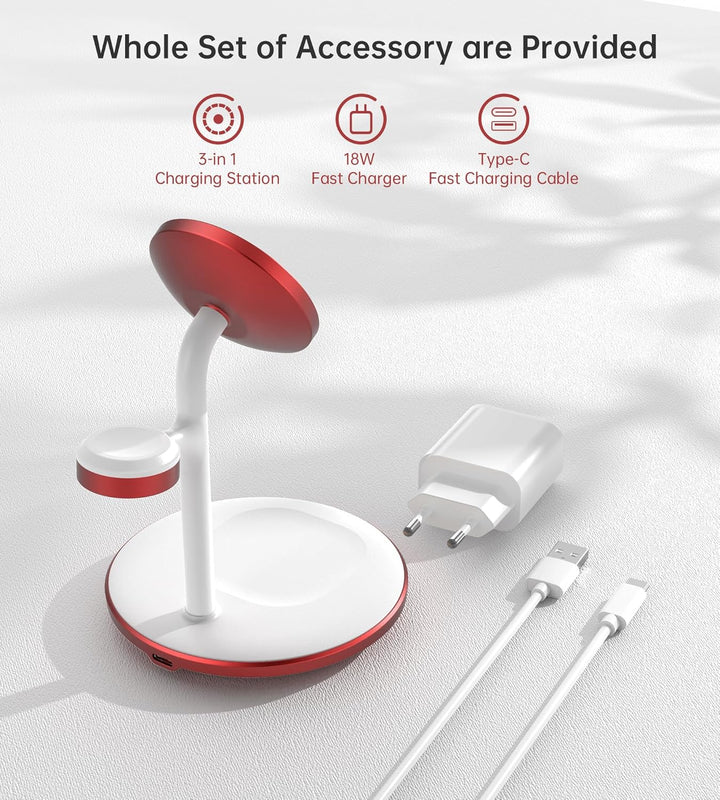 - ⚡️Einfach bequem tragen⚡️Diese kabellose 3 in 1 Ladestation kann Ihr Telefon/Uhr/Kopfhörer gleichzeitig aufladen. zu Hause, bei der Arbeit,unterwegs,Sie müssen diese vielseitige kabellose Ladestation einfach mitnehmen(kompatibel mit iPhone