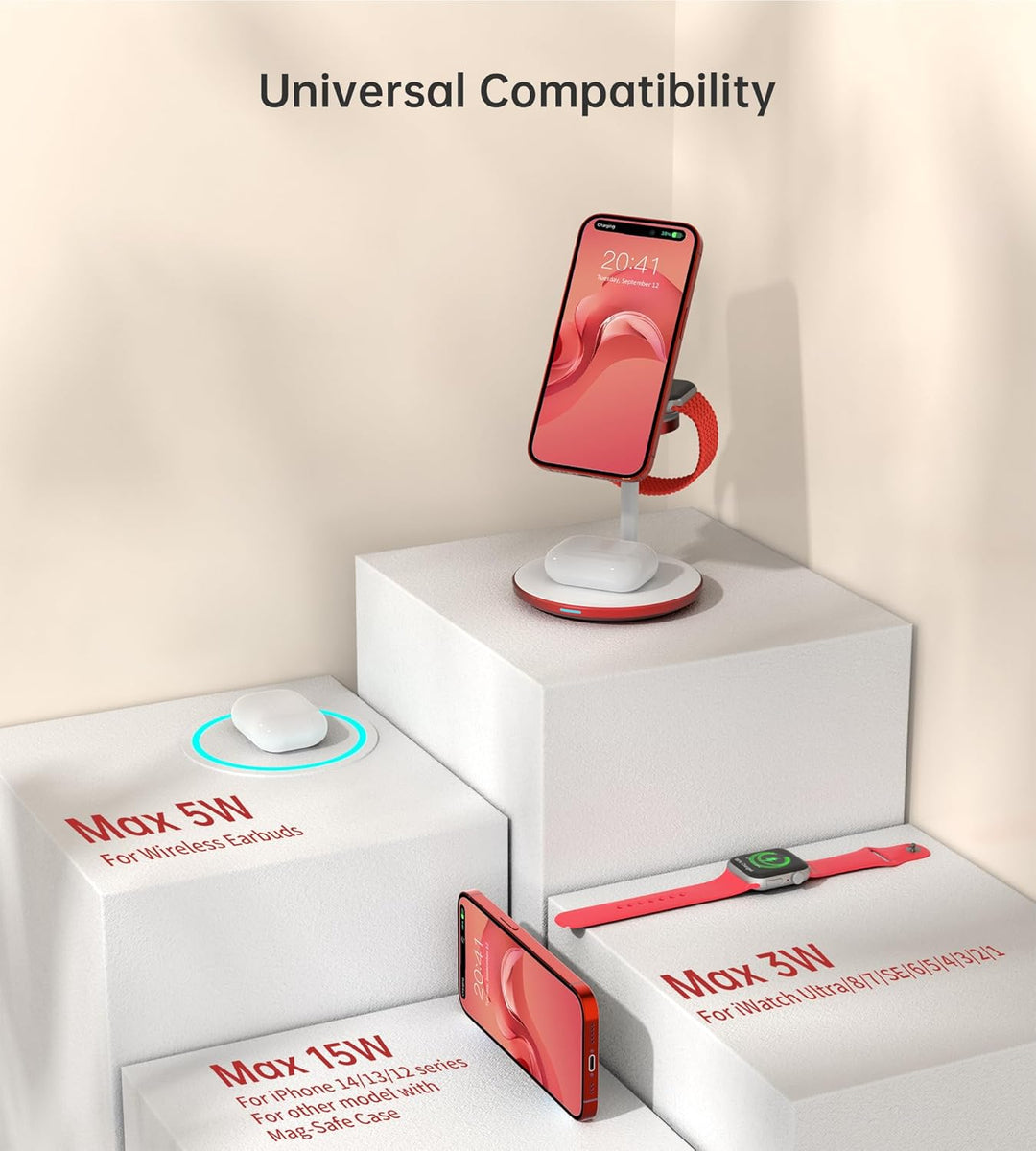 - ⚡️Universell Kompatibilität sicher kabellos Aufladen⚡️Das kabellose Ladegerät ist weitgehend kompatibel mit Telefon und Uhren, kompatibel mit iWatch Ultra/8/7/SE/6/5/4/3/2 AirPods Pro/3/2 und allen Qi-fähigen Geräten
