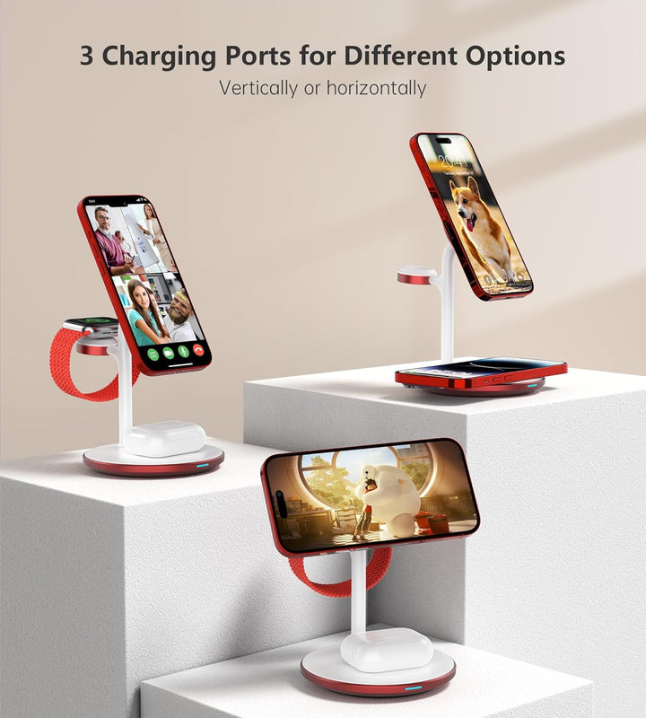 - ⚡️3 in 1 kabellose Ladestation USB C Adapter⚡️Kompatibel mit der Ladestation des iPhone 15/14/13/12 Serien.Ladestation kann mehrere Geräte gleichzeitig ordentlich an einem Ort aufladen. Laden Sie Ihr Phones/iWatch/Airpods helfen Ihnen ,