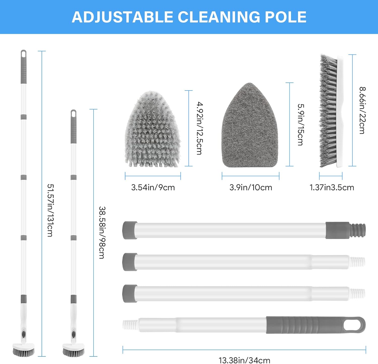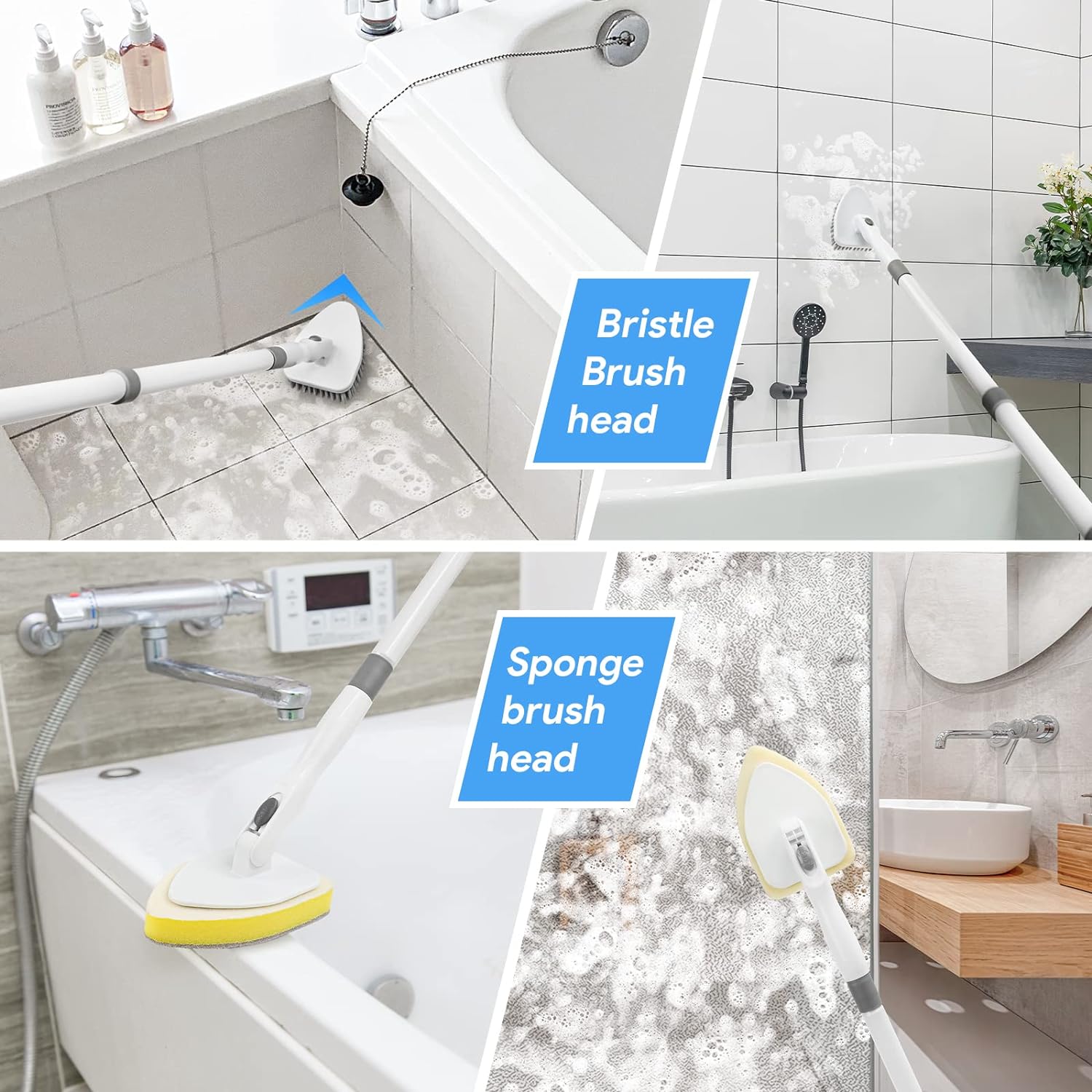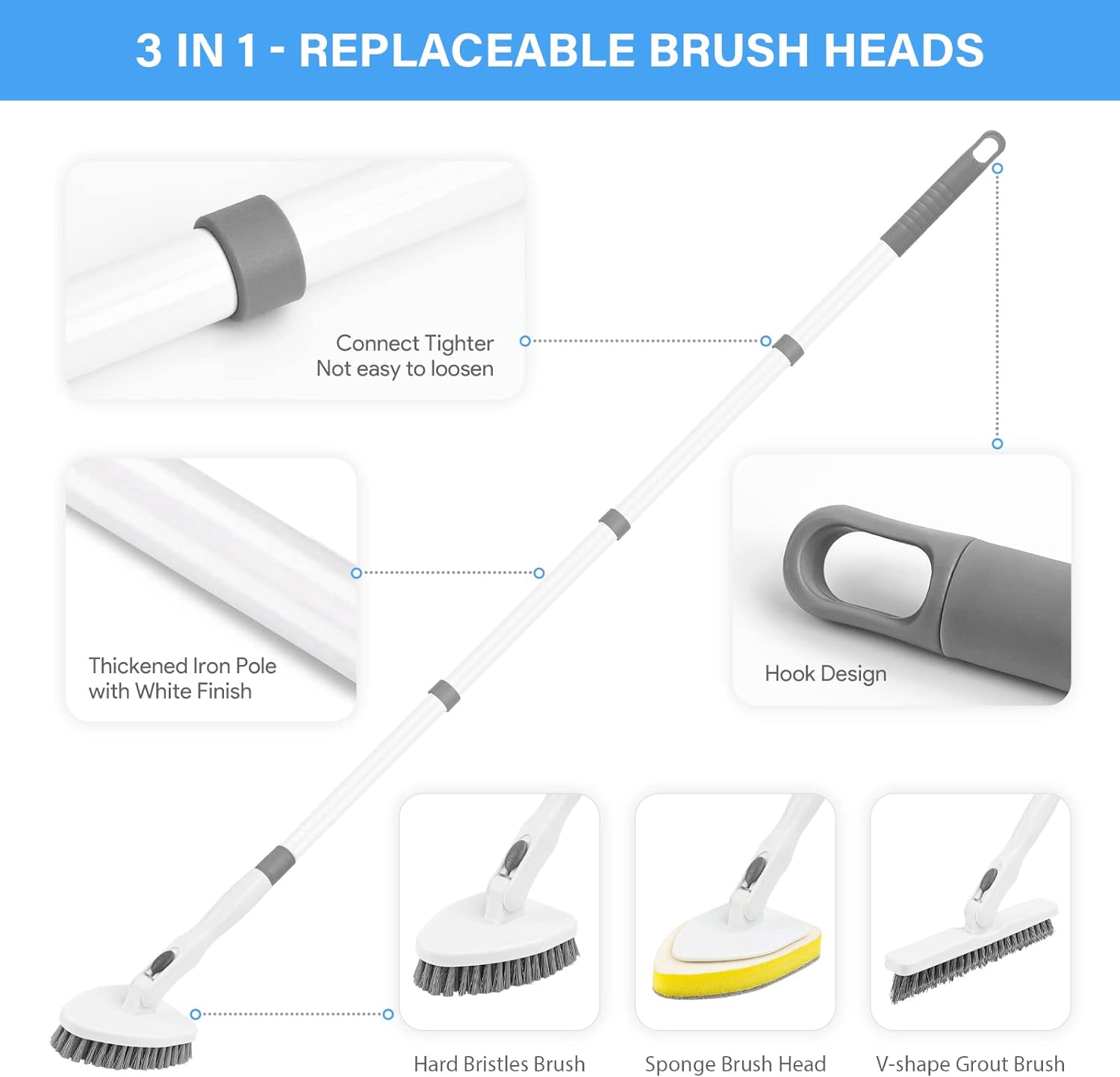 - 【3 in 1 Reinigungsbürste Bad】Sie erhalten einen abnehmbaren langen Stangen und 3 austauschbare Badezimmer Reinigungsbürstenköpfe (1 Steife Borstenbürste, 1 Scheuerpad und 1 V-förmige Fugenbürste) in diesem Kit. 3-austauschbare Reinigungsköpfe