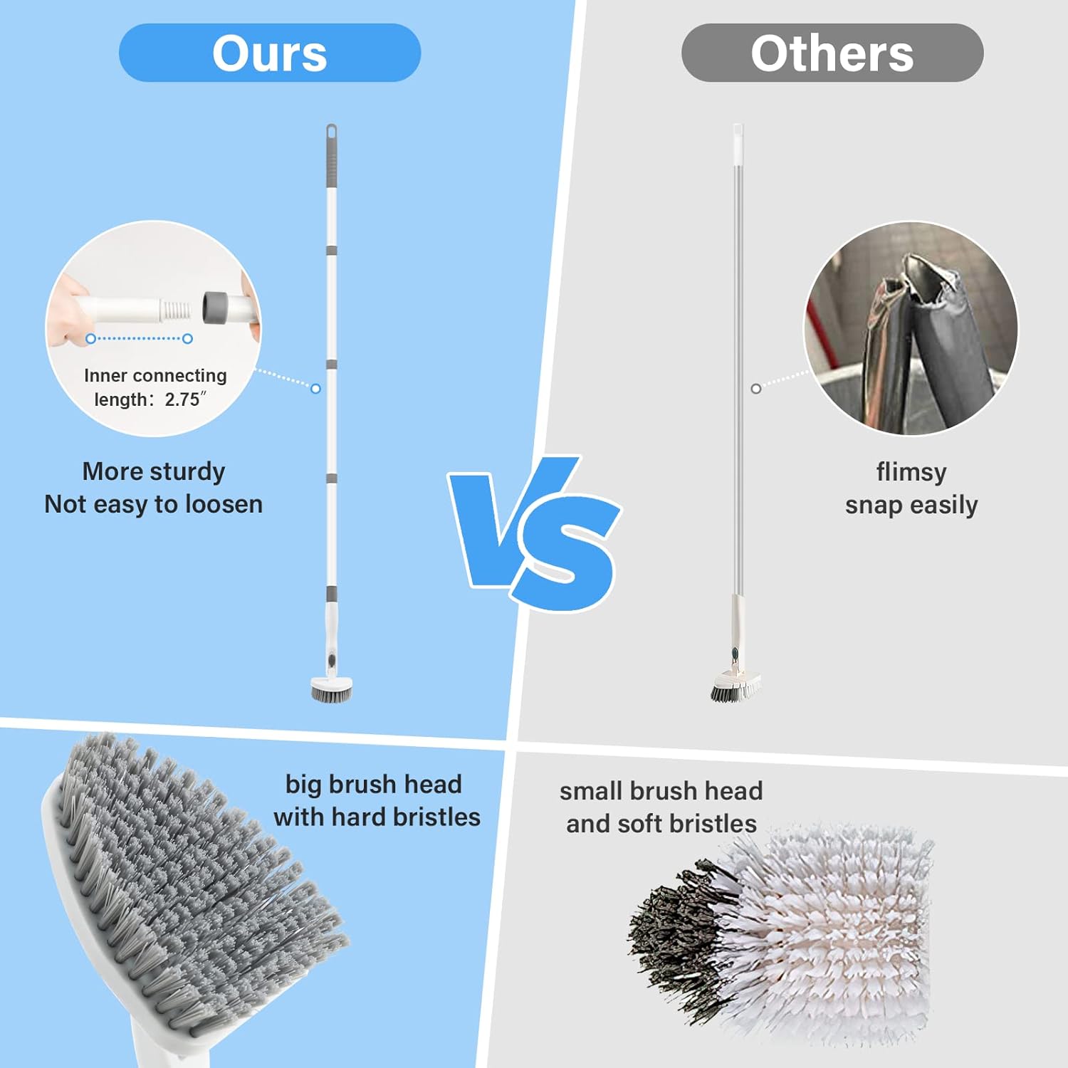 - 【Scheuerbürste mit langem Griff】Die lange Grifflänge kann von 30.5", 40.5" bis 51.5" eingestellt werden, kein Biegen, Knien oder Hocken mehr. Der aufgerüstete Edelstahl-Langmast ist stabiler und löst sich beim Reinigen nicht. Hakendesign am