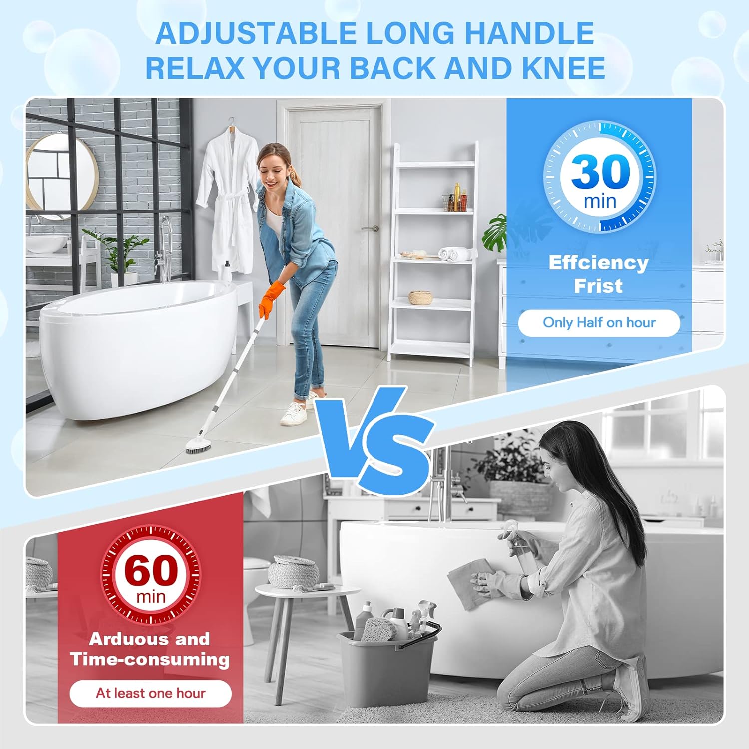 - 【3 Winkel abschliessbar】Der Bürstenkopf für Wannen- und Fliesenwäscher kann in drei Winkeln (90°, 120°, 180°) arretiert werden, um ein Hin- und Rückdrehen beim Reinigen zu verhindern. 180-Grad-Rotationsdesign zur Reinigung in verschiedenen