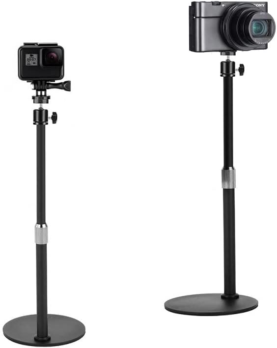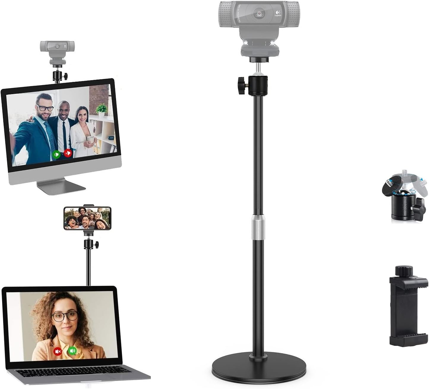 - Tisch-Webcam-Halterung kann überall platziert werden, wo Sie wollen; die Höhe ist leicht einstellbar von 24cm bis 45,5m. Lösen Sie einfach den Drehverschluss, stellen Sie die gewünschte Höhe ein und ziehen Sie ihn wieder fest.