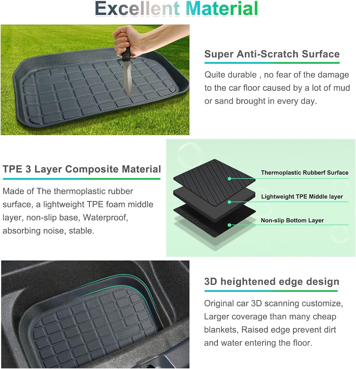 - 【3-Schichtige Struktur, Ausgezeichnetes Material, langlebig und umweltfreundlich】 Es verwendet das neue synthetische TPE-Material (Thermoplastisches Elastomer) und hat die strenge EU-Umweltschutz-RoHS-Zertifizierung bestanden. Angenehm anzufassen,