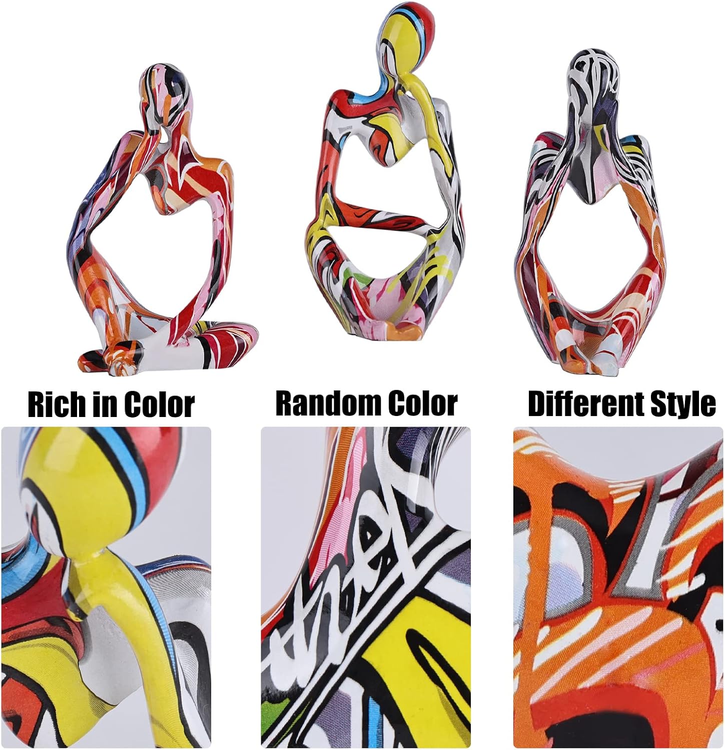 - [Material- und Prozesseinführung]: Set mit 3 Harz-Graffiti-Statuen, minimalistische abstrakte Kunst-Denker-Statue ist mit Wassertransferdruck-Technologie hergestellt, Harzmaterial ist langlebig, die Denker-Statue hat starke Farben, starke Farben können