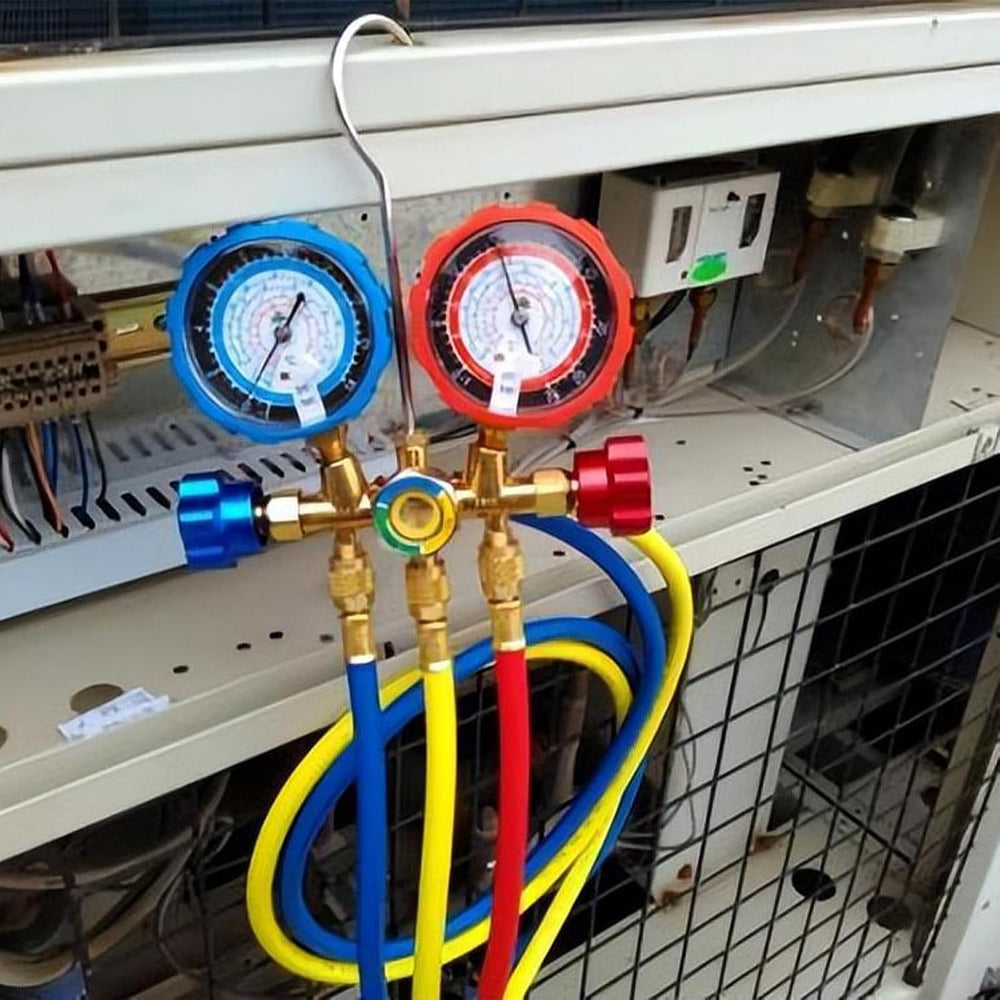 - 【Schritte zur Verwendung】Schliessen Sie vor der Verwendung den blauen Schlauch an den Niederdruckanschluss, den roten Schlauch an den Hochdruckanschluss und den gelben Schlauch an die Kühlmittelbeladung/-entladung an. Es wird hauptsächlich zur