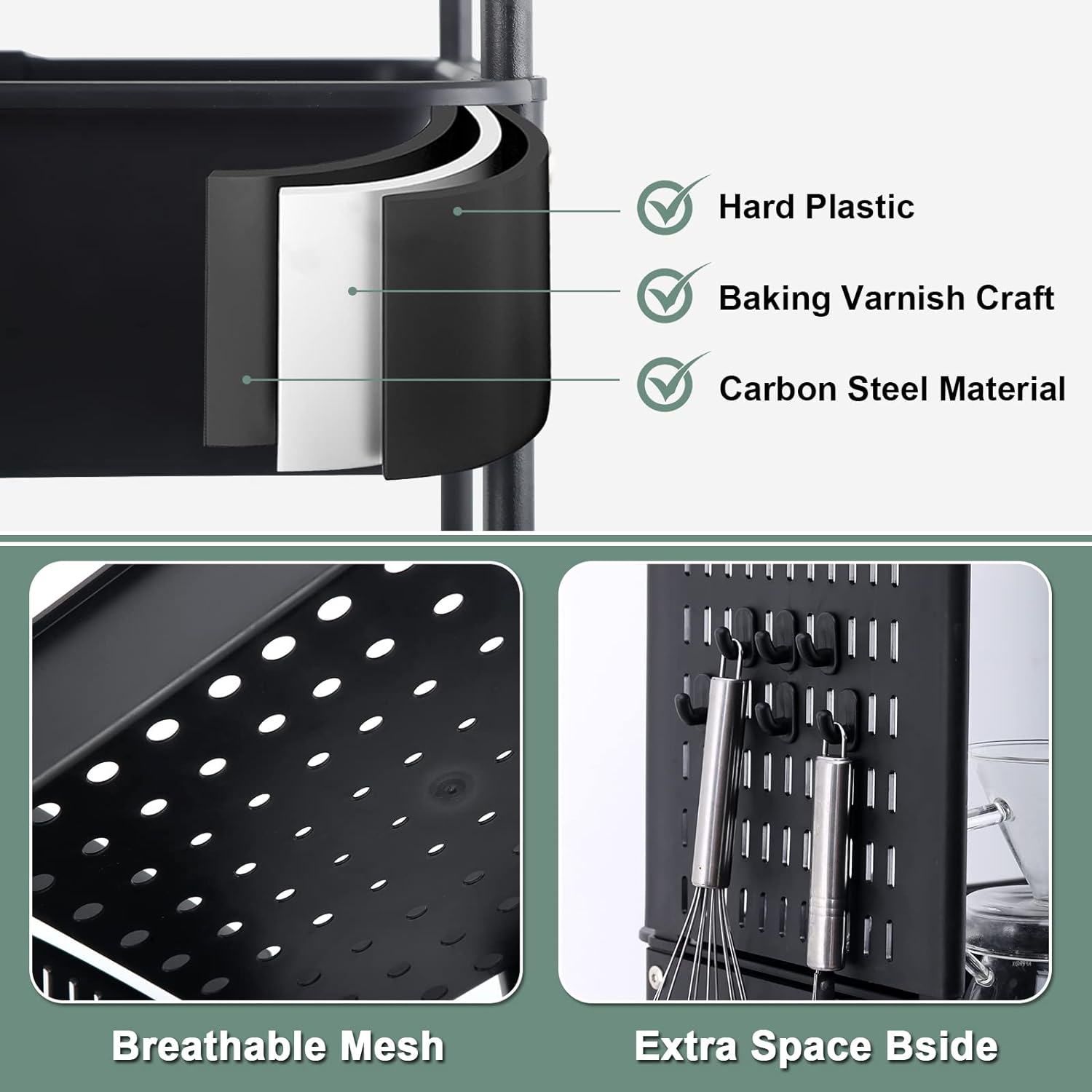 - Beweglicher Wagen: Verglichen mit dem gewöhnlichen Wagen besteht unser verbesserter Pegboard-Wagen aus perforiertem Stahl-Pegboard auf beiden Seiten, der nach Ihren Vorlieben und Bedürfnissen DIY kann! Zusätzlich sind 3-Körbe, 6-Haken enthalten, die