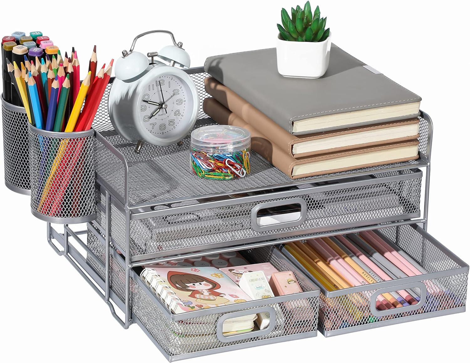 - Multifunktion: Office Desk Supplies Organizer besteht aus 4 Schiebetabletts und 2 hängenden Stifthaltern, die über ausreichend Stauraum für alle Büromaterialien verfügen.